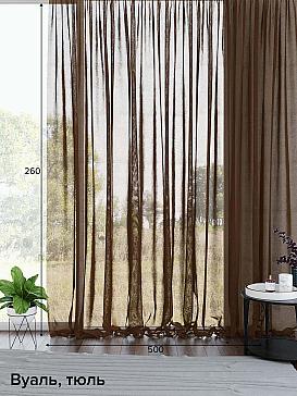 ВыбратьТюль 1 шт. Легкий, мягкий тюль из коричневой вуали. Вуаль с матовой полупрозрачной текстурой. Отличается особым шиком, идеально подходит для создания воздушных штор. Придает ощущение свежести, хорошо пропускает воздух. Ткань неприхотлива в уходе, хорошо стирается без разрушения волокон с течением времени за счет высокого кручения нитей.