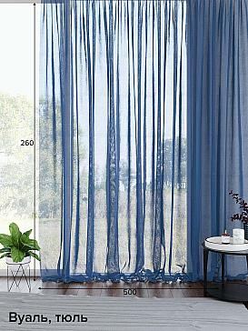 ВыбратьТюль 1 шт. Легкий, мягкий тюль из синий вуали. Вуаль с матовой полупрозрачной текстурой. Отличается особым шиком, идеально подходит для создания воздушных штор. Придает ощущение свежести, хорошо пропускает воздух. Ткань неприхотлива в уходе, хорошо стирается без разрушения волокон с течением времени за счет высокого кручения нитей.