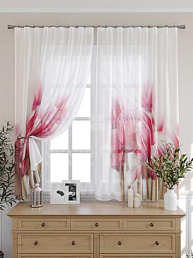 Тюль 2 шт. Подхват - доп.услуга. Легкая основа (вуаль) оформлена принтом. Вуаль с матовой полупрозрачной текстурой. Отличается особым шиком, идеально подходит для создания воздушных штор. Придает ощущение свежести, хорошо пропускает воздух. Ткань неприхотлива в уходе, хорошо стирается без разрушения волокон с течением времени за счет высокого кручения нитей.