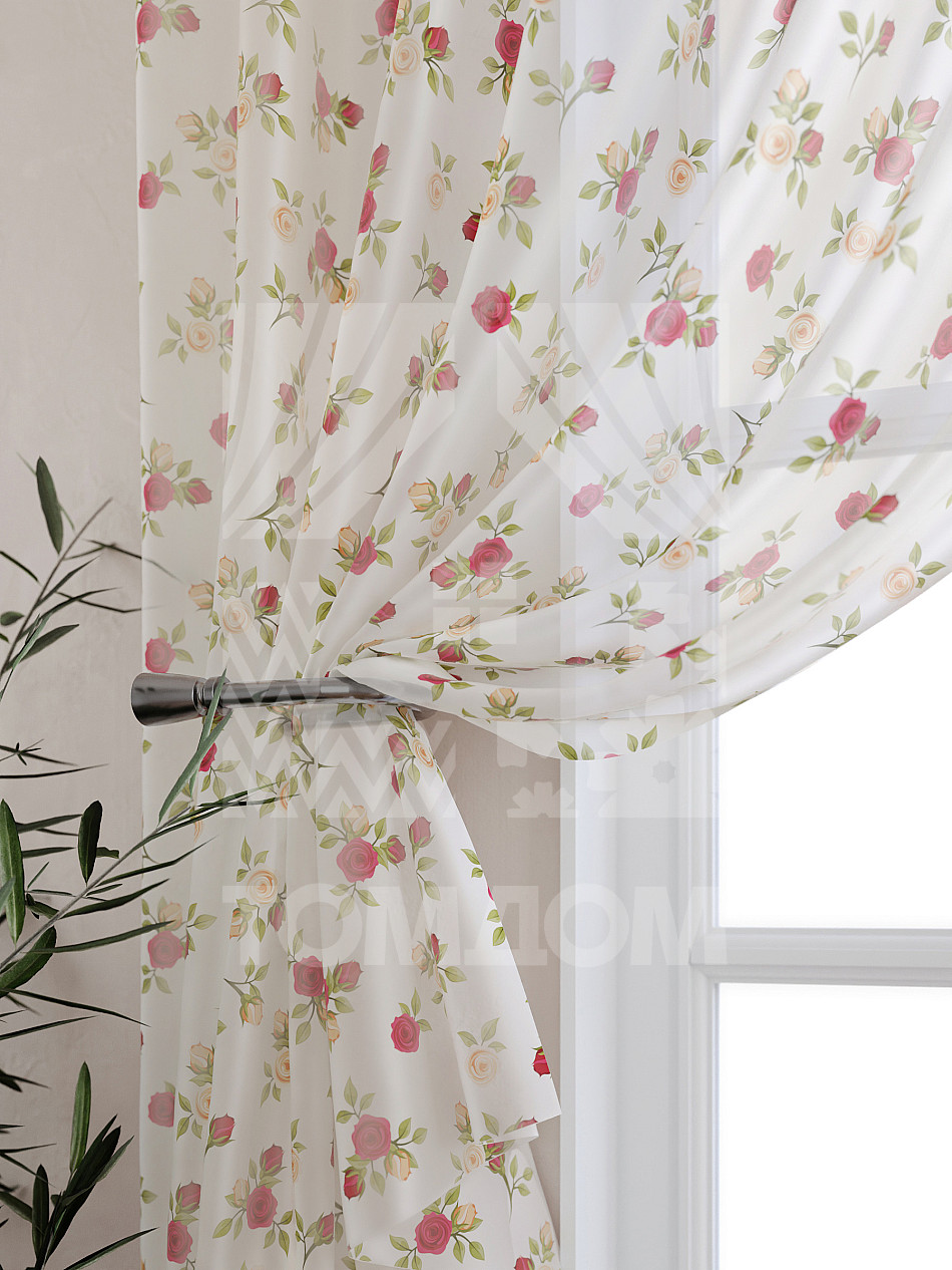 Тюль 2 шт. Подхват - доп.услуга. Легкая основа (вуаль) оформлена принтом. Вуаль с матовой полупрозрачной текстурой. Отличается особым шиком, идеально подходит для создания воздушных штор. Придает ощущение свежести, хорошо пропускает воздух. Ткань неприхотлива в уходе, хорошо стирается без разрушения волокон с течением времени за счет высокого кручения нитей.