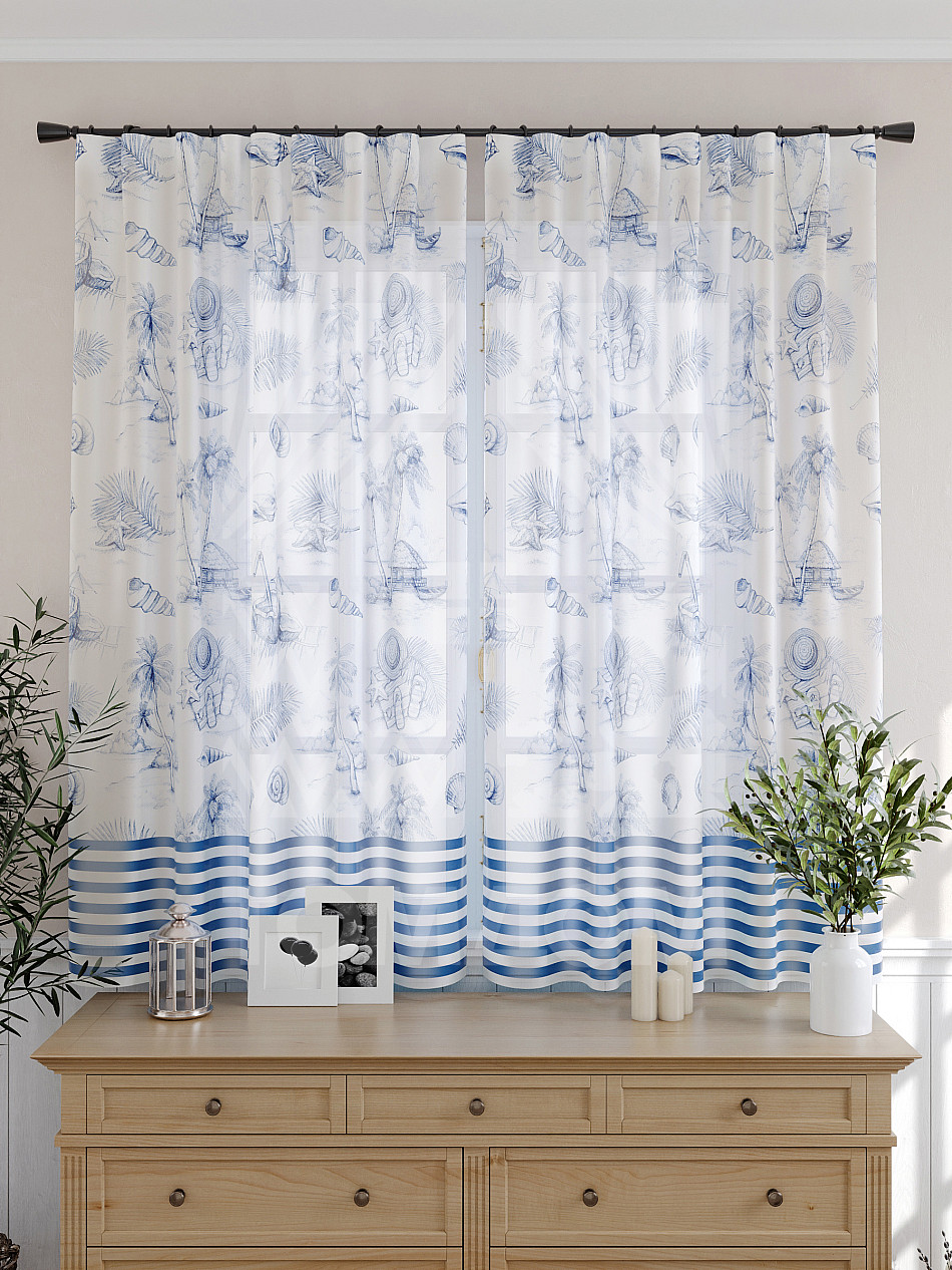 Тюль 2 шт. Подхват - доп.услуга. Легкая основа (вуаль) оформлена принтом. Вуаль с матовой полупрозрачной текстурой. Отличается особым шиком, идеально подходит для создания воздушных штор. Придает ощущение свежести, хорошо пропускает воздух. Ткань неприхотлива в уходе, хорошо стирается без разрушения волокон с течением времени за счет высокого кручения нитей.