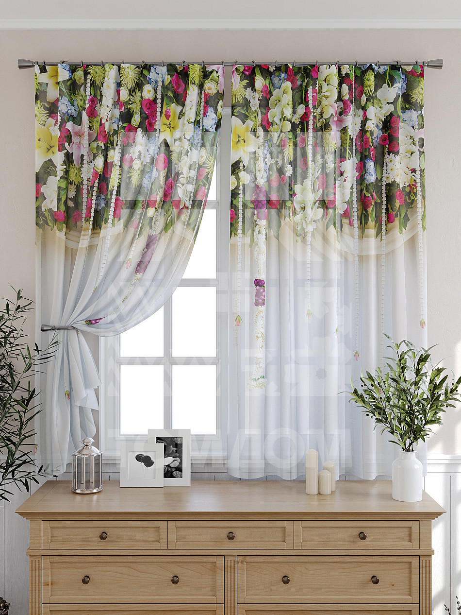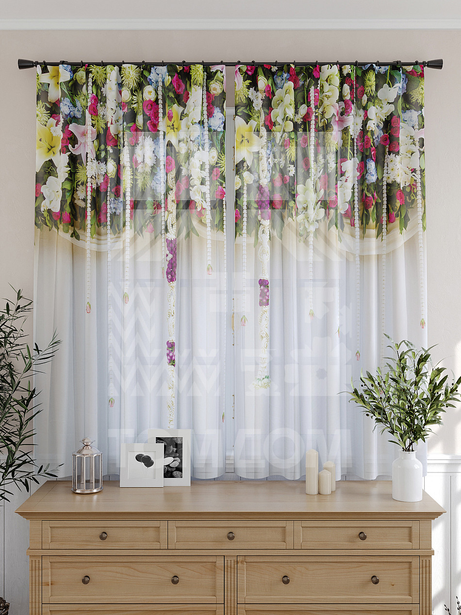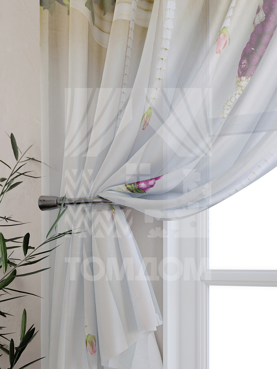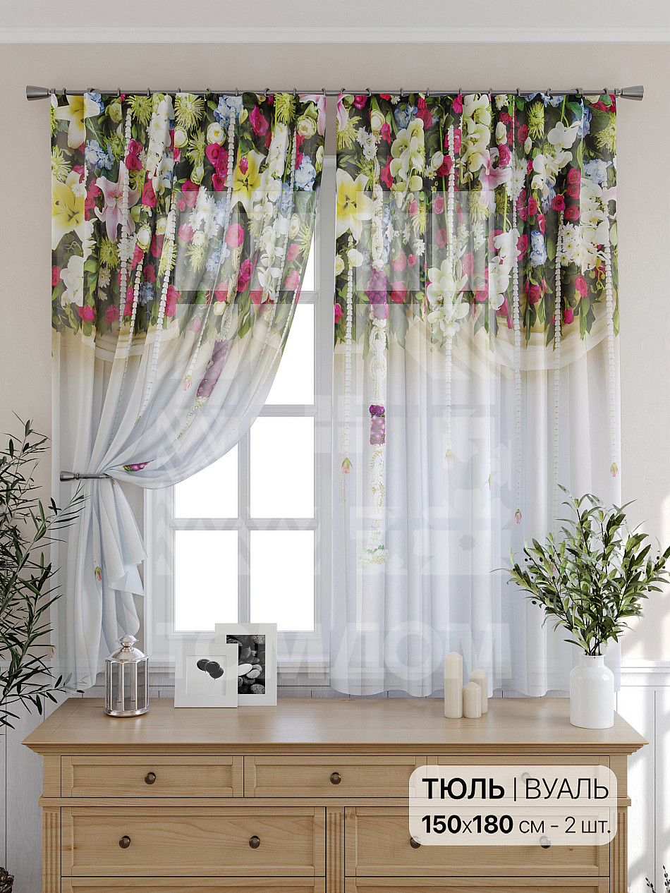 Тюль 2 шт. Подхват - доп.услуга. Легкая основа (вуаль) оформлена принтом. Вуаль с матовой полупрозрачной текстурой. Отличается особым шиком, идеально подходит для создания воздушных штор. Придает ощущение свежести, хорошо пропускает воздух. Ткань неприхотлива в уходе, хорошо стирается без разрушения волокон с течением времени за счет высокого кручения нитей.