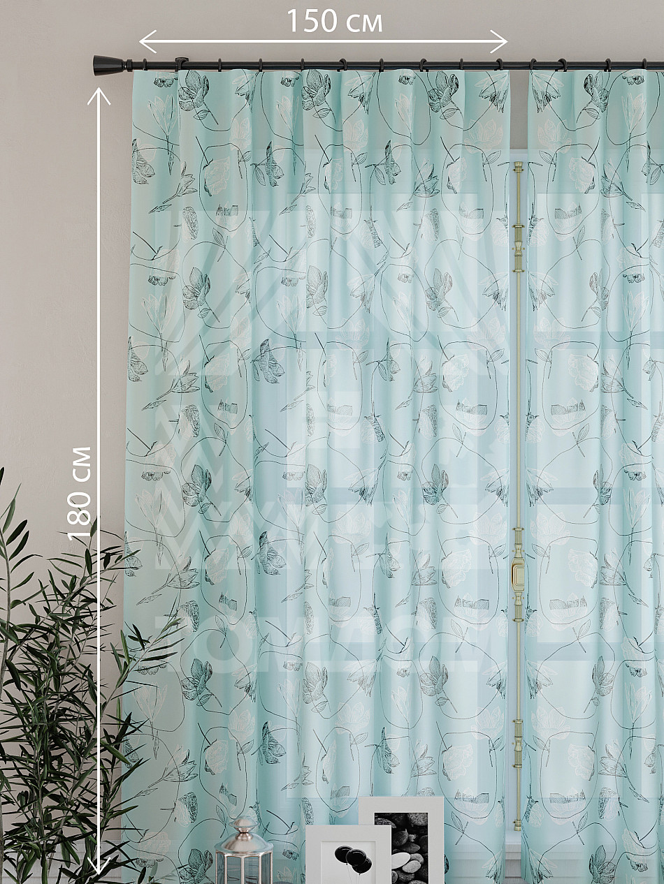 Ширина одного тюля без сборки 150 см, высота 180 см.