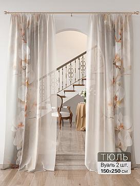 Тюль 2 шт. Легкая основа (вуаль) оформлена фотопечатью. Вуаль с матовой полупрозрачной текстурой. Отличается особым шиком, идеально подходит для создания воздушных штор. Придает ощущение свежести, хорошо пропускает воздух. Ткань неприхотлива в уходе, хорошо стирается без разрушения волокон с течением времени за счет высокого кручения нитей.