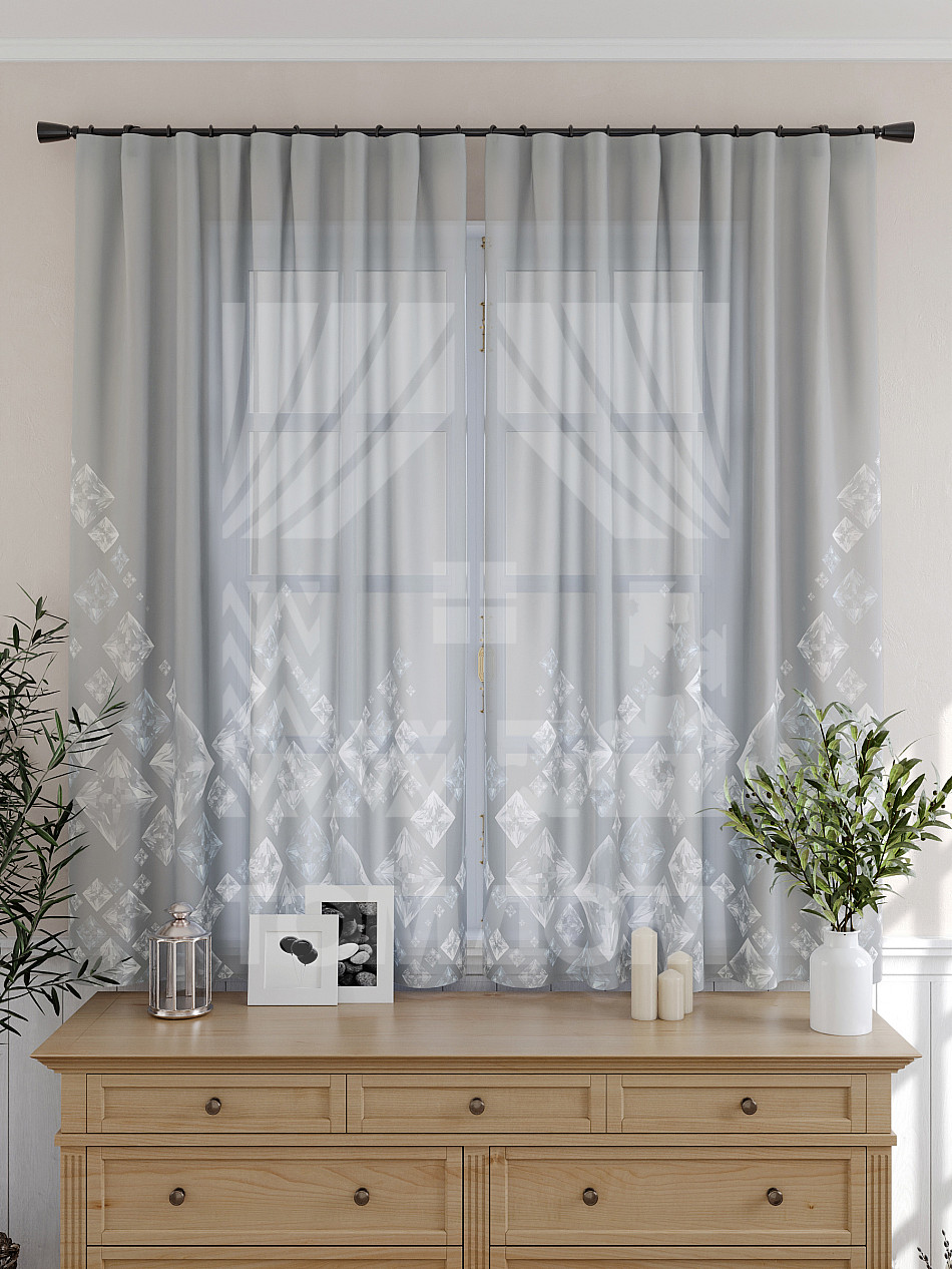 Тюль 2 шт. Подхват - доп.услуга. Легкая основа (вуаль) оформлена принтом. Вуаль с матовой полупрозрачной текстурой. Отличается особым шиком, идеально подходит для создания воздушных штор. Придает ощущение свежести, хорошо пропускает воздух. Ткань неприхотлива в уходе, хорошо стирается без разрушения волокон с течением времени за счет высокого кручения нитей.