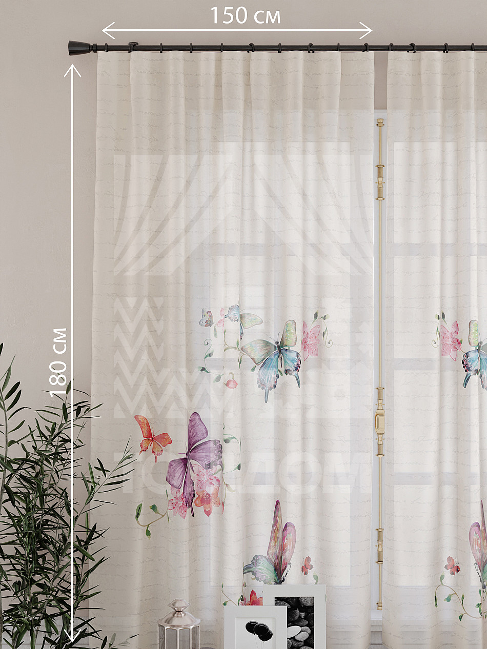 Ширина одного тюля без сборки 150 см, высота 180 см.