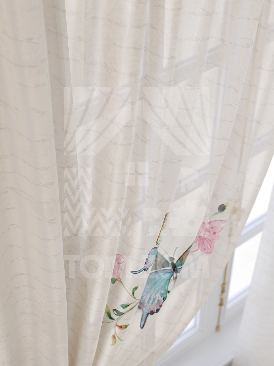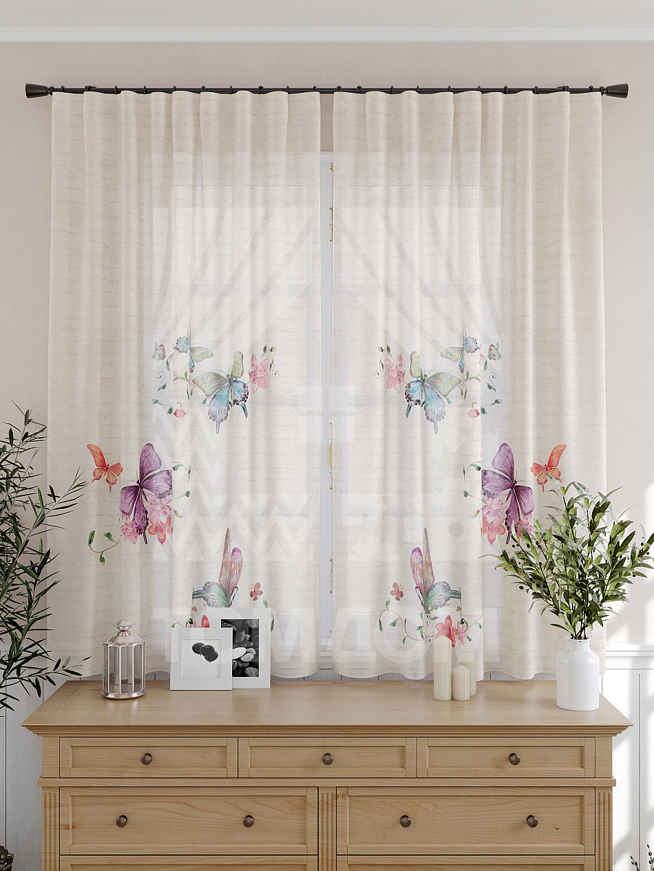 Тюль 2 шт. Подхват - доп.услуга. Легкая основа (вуаль) оформлена принтом. Вуаль с матовой полупрозрачной текстурой. Отличается особым шиком, идеально подходит для создания воздушных штор. Придает ощущение свежести, хорошо пропускает воздух. Ткань неприхотлива в уходе, хорошо стирается без разрушения волокон с течением времени за счет высокого кручения нитей.