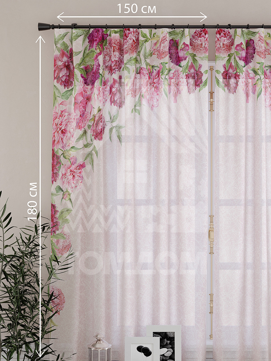 Ширина одного тюля без сборки 150 см, высота 180 см.