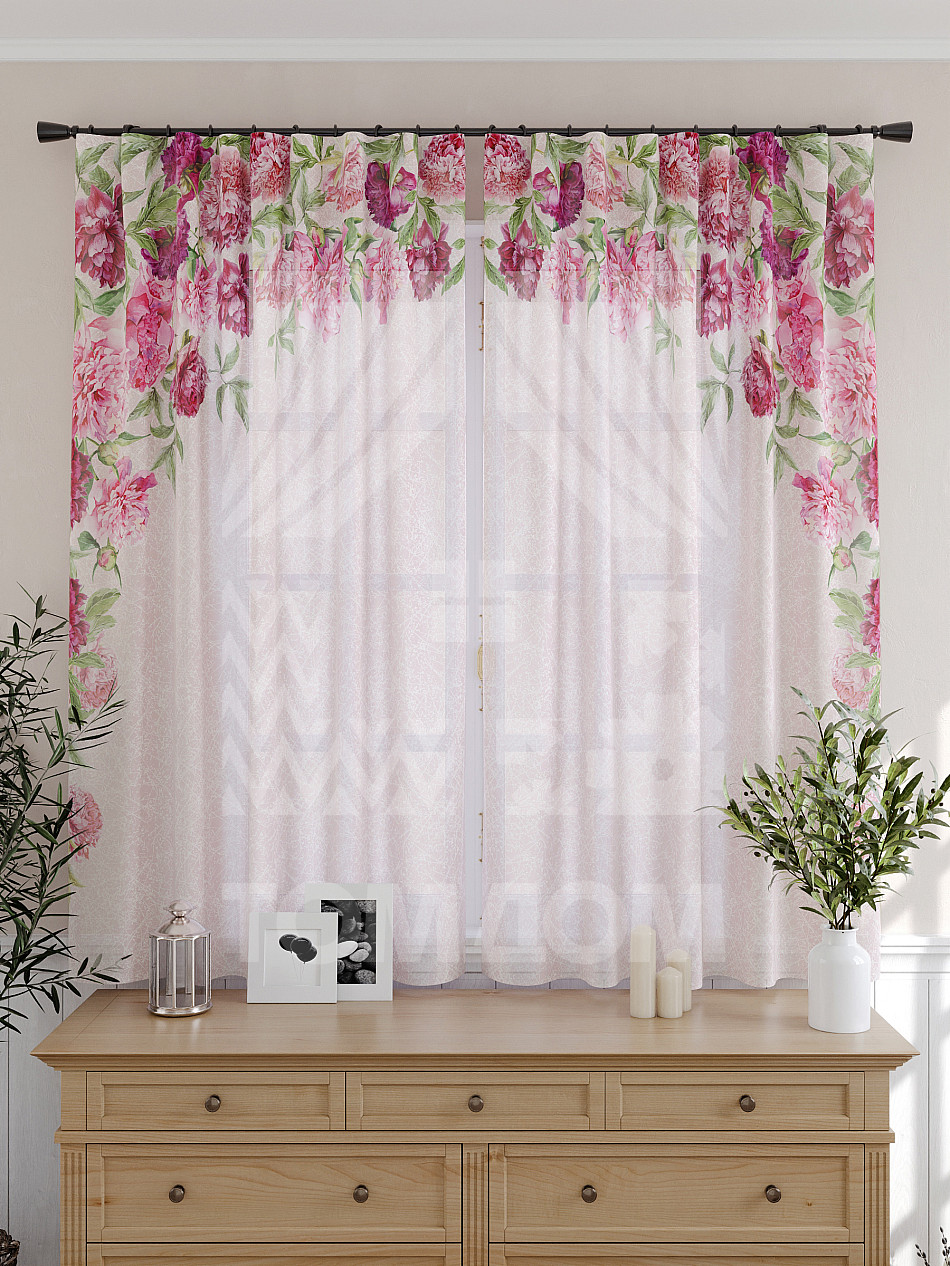 Тюль 2 шт. Подхват - доп.услуга. Легкая основа (вуаль) оформлена принтом. Вуаль с матовой полупрозрачной текстурой. Отличается особым шиком, идеально подходит для создания воздушных штор. Придает ощущение свежести, хорошо пропускает воздух. Ткань неприхотлива в уходе, хорошо стирается без разрушения волокон с течением времени за счет высокого кручения нитей.