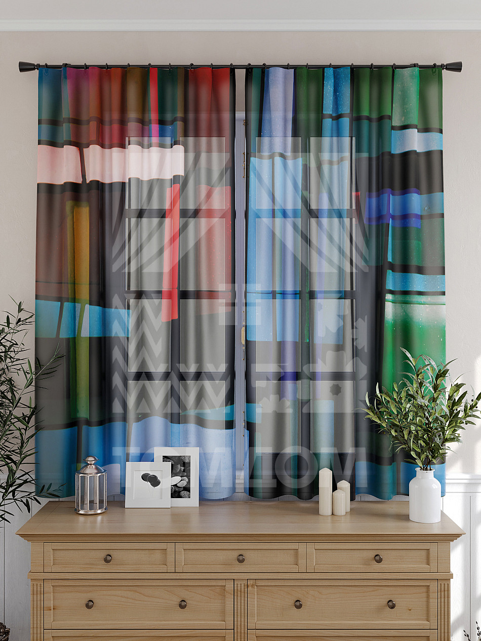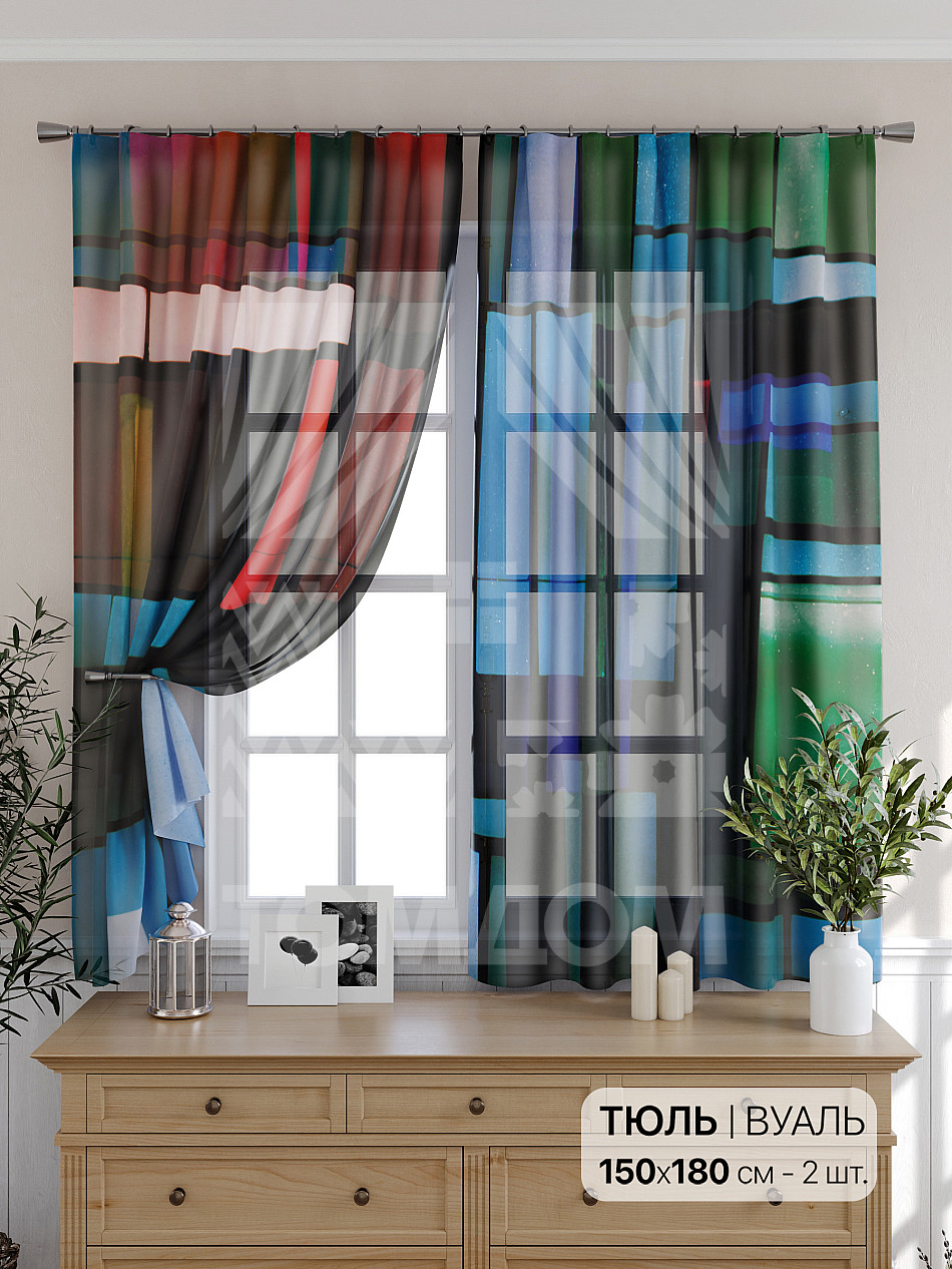 Тюль 2 шт. Подхват - доп.услуга. Легкая основа (вуаль) оформлена принтом. Вуаль с матовой полупрозрачной текстурой. Отличается особым шиком, идеально подходит для создания воздушных штор. Придает ощущение свежести, хорошо пропускает воздух. Ткань неприхотлива в уходе, хорошо стирается без разрушения волокон с течением времени за счет высокого кручения нитей.