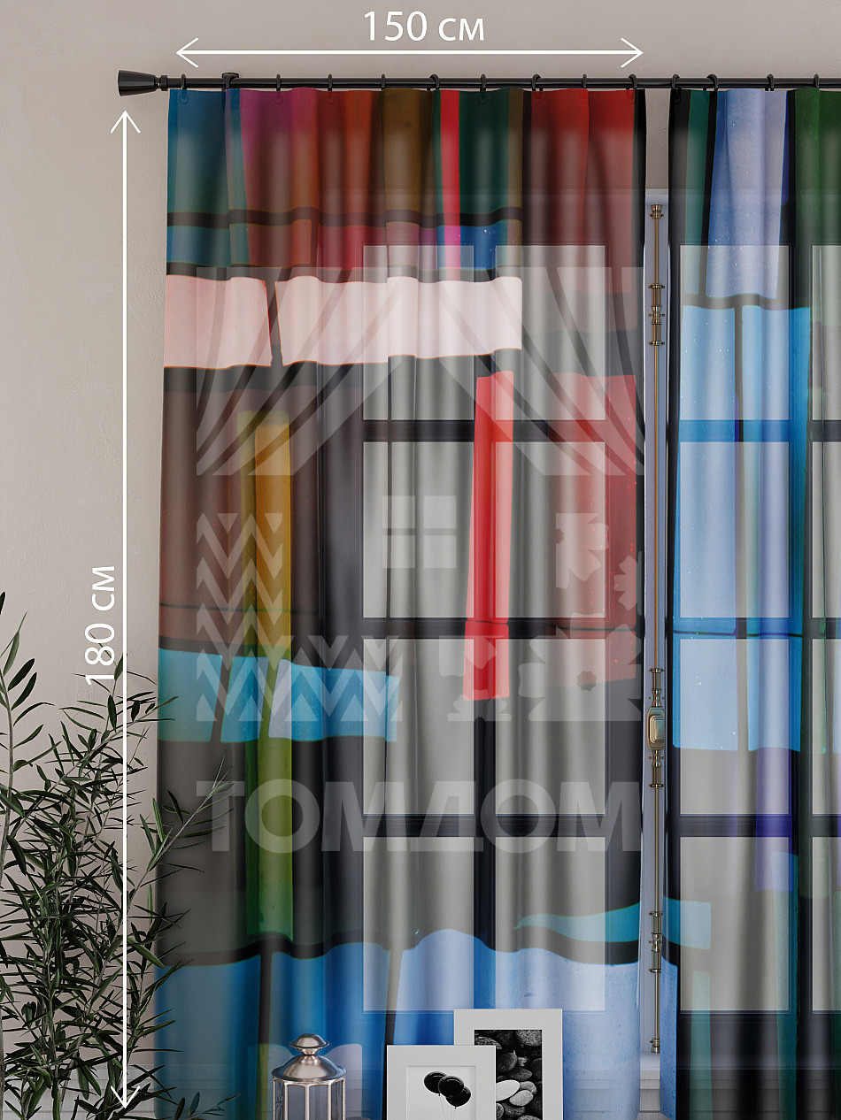 Ширина одного тюля без сборки 150 см, высота 180 см.