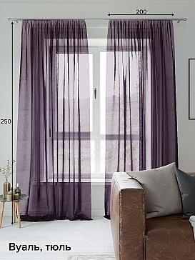 ВыбратьТюль 1 шт. Легкий, мягкий тюль из фиолетовой вуали. Вуаль с матовой полупрозрачной текстурой. Отличается особым шиком, идеально подходит для создания воздушных штор. Придает ощущение свежести, хорошо пропускает воздух. Ткань неприхотлива в уходе, хорошо стирается без разрушения волокон с течением времени за счет высокого кручения нитей.