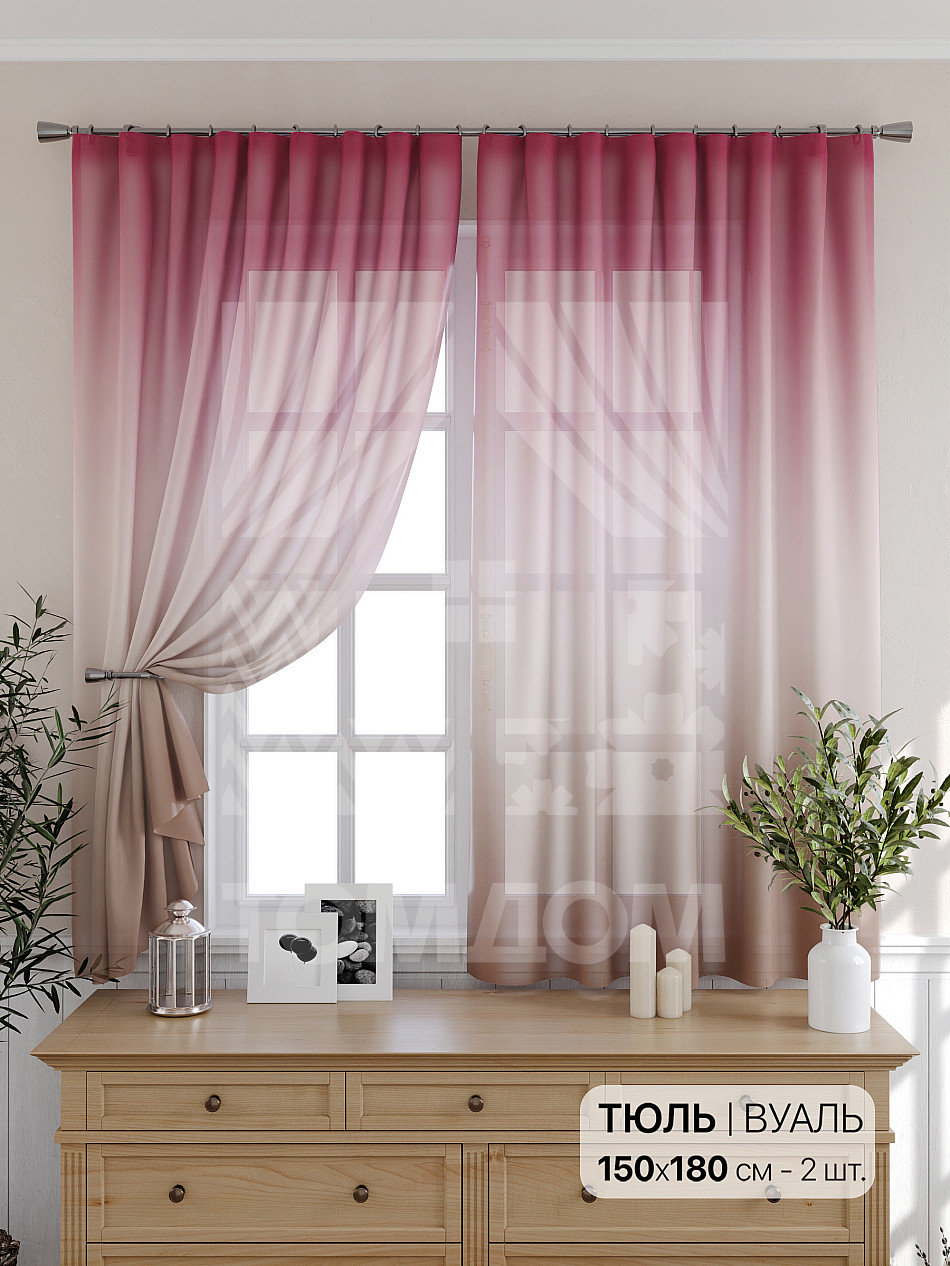 Тюль 2 шт. Подхват - доп.услуга. Легкая основа (вуаль) оформлена принтом. Вуаль с матовой полупрозрачной текстурой. Отличается особым шиком, идеально подходит для создания воздушных штор. Придает ощущение свежести, хорошо пропускает воздух. Ткань неприхотлива в уходе, хорошо стирается без разрушения волокон с течением времени за счет высокого кручения нитей.
