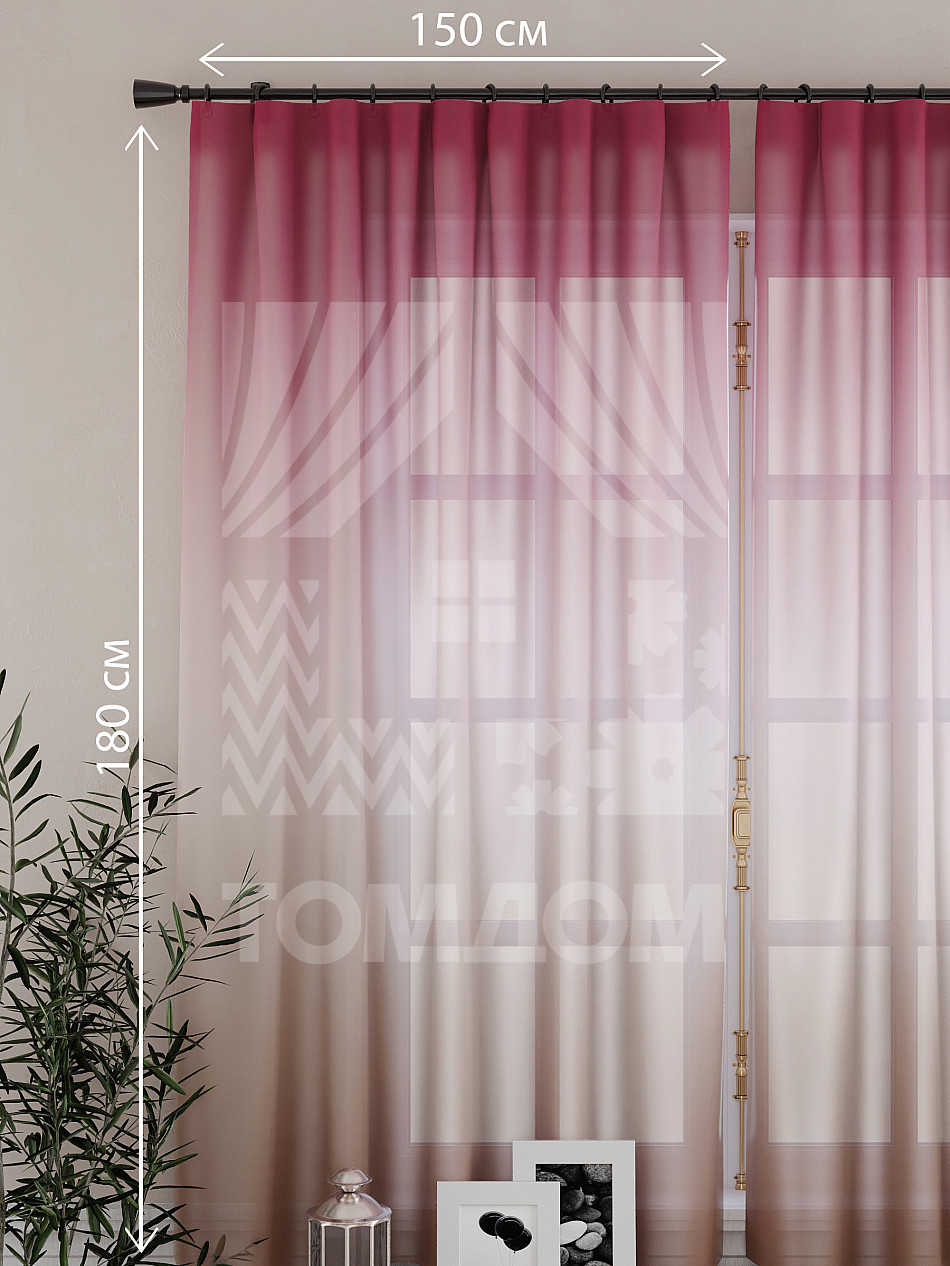Ширина одного тюля без сборки 150 см, высота 180 см.
