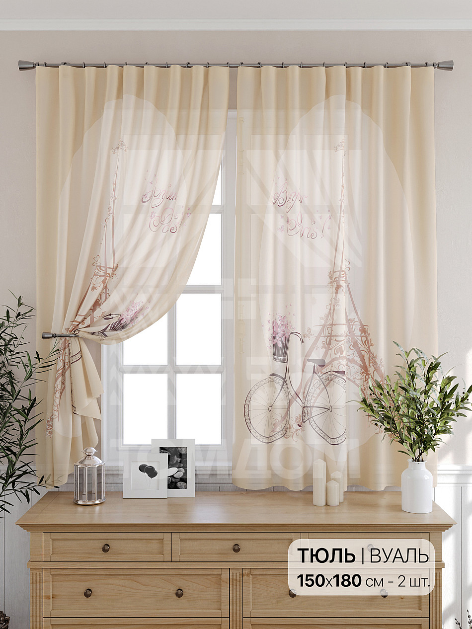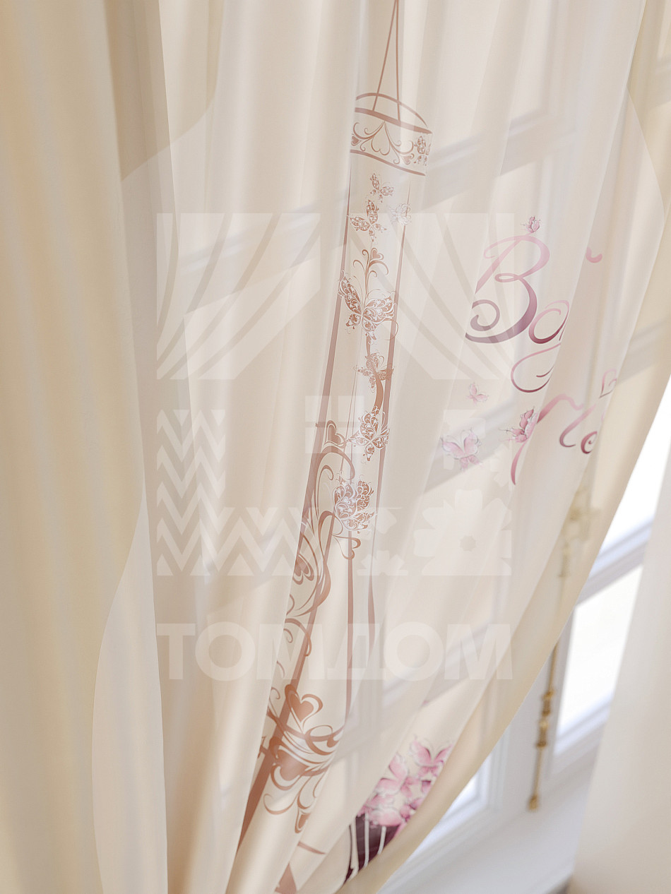 Тюль 2 шт. Подхват - доп.услуга. Легкая основа (вуаль) оформлена принтом. Вуаль с матовой полупрозрачной текстурой. Отличается особым шиком, идеально подходит для создания воздушных штор. Придает ощущение свежести, хорошо пропускает воздух. Ткань неприхотлива в уходе, хорошо стирается без разрушения волокон с течением времени за счет высокого кручения нитей.