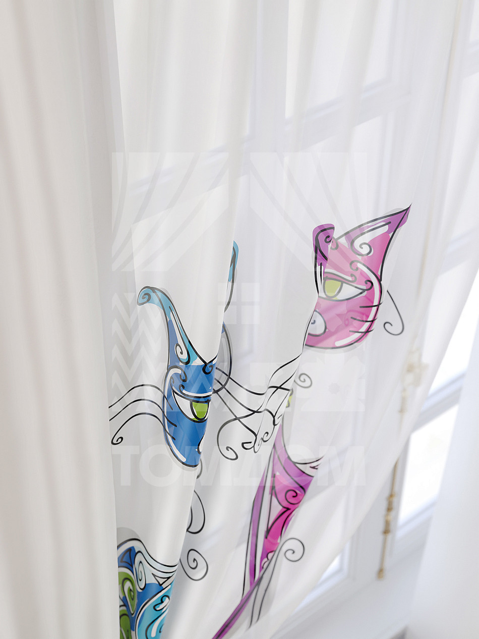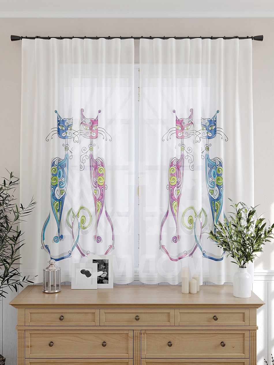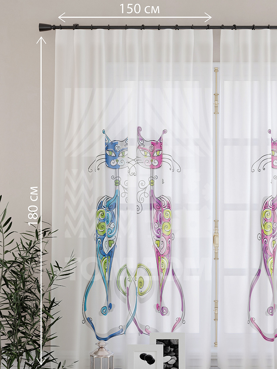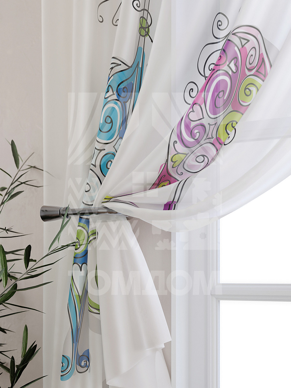 Тюль 2 шт. Подхват - доп.услуга. Легкая основа (вуаль) оформлена принтом. Вуаль с матовой полупрозрачной текстурой. Отличается особым шиком, идеально подходит для создания воздушных штор. Придает ощущение свежести, хорошо пропускает воздух. Ткань неприхотлива в уходе, хорошо стирается без разрушения волокон с течением времени за счет высокого кручения нитей.