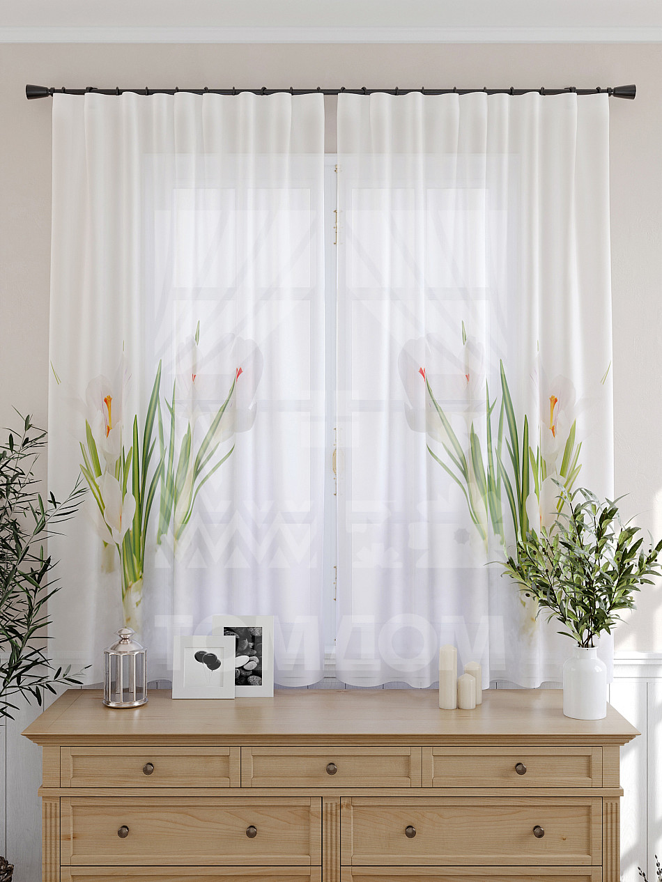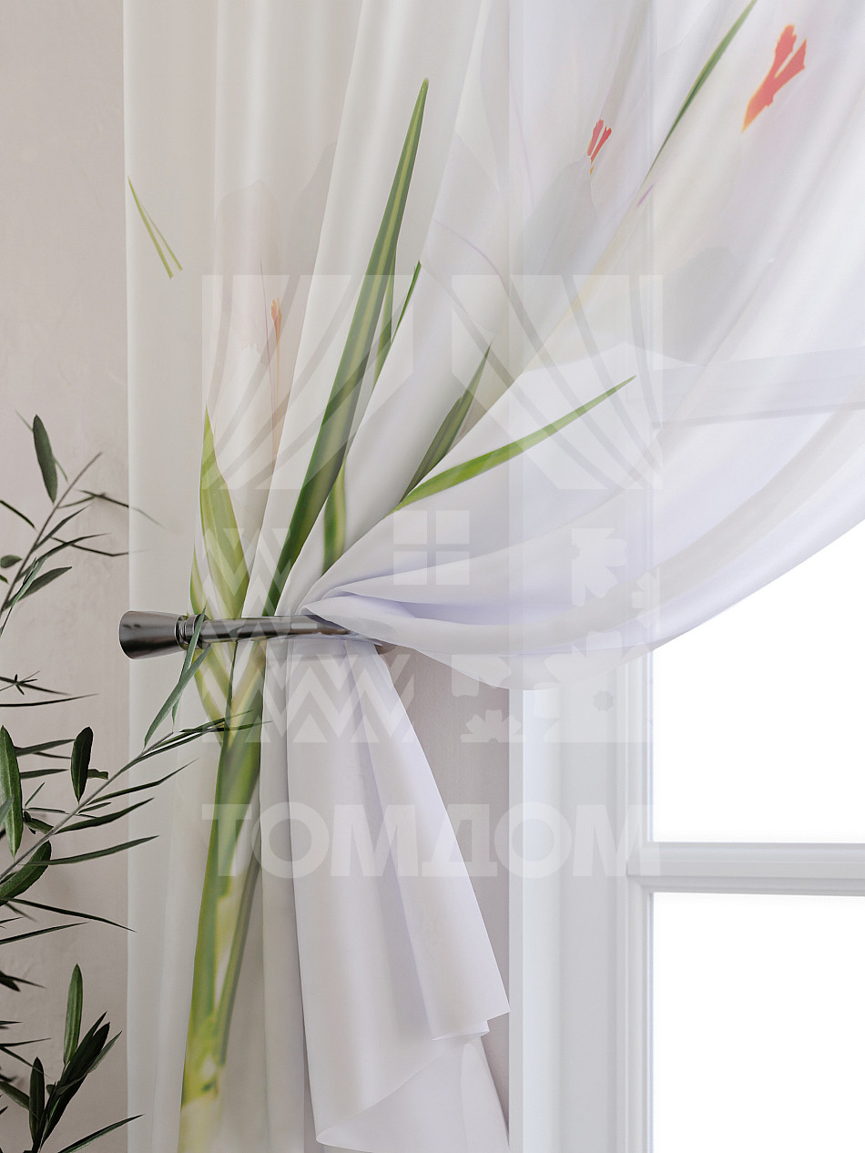 Тюль 2 шт. Подхват - доп.услуга. Легкая основа (вуаль) оформлена принтом. Вуаль с матовой полупрозрачной текстурой. Отличается особым шиком, идеально подходит для создания воздушных штор. Придает ощущение свежести, хорошо пропускает воздух. Ткань неприхотлива в уходе, хорошо стирается без разрушения волокон с течением времени за счет высокого кручения нитей.