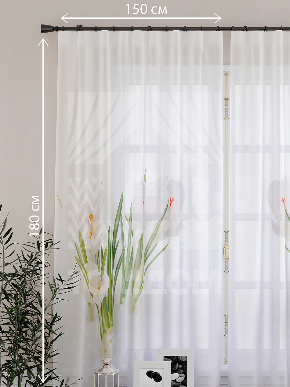 Ширина одного тюля без сборки 150 см, высота 180 см.