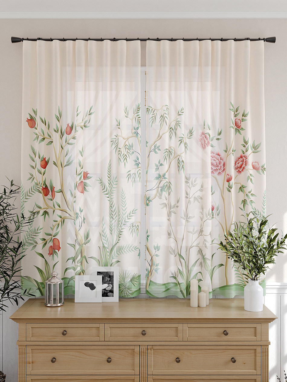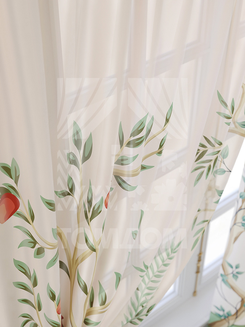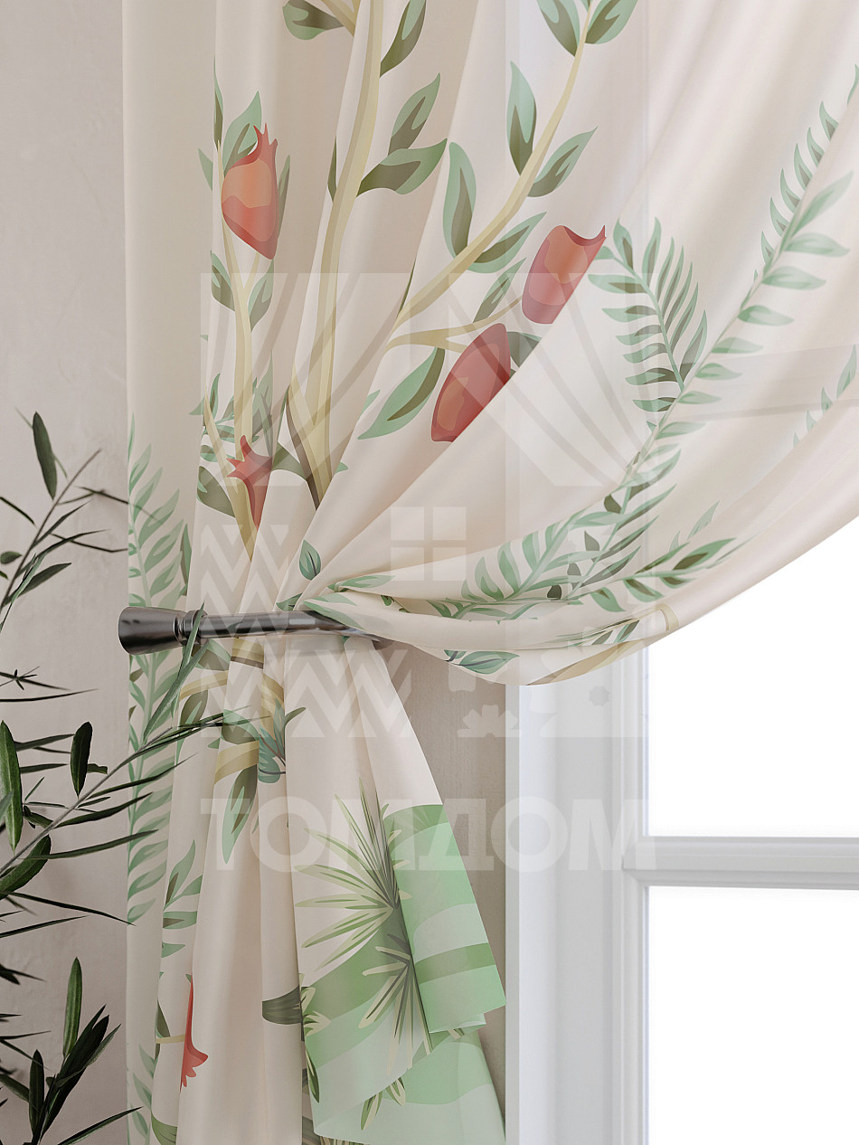 Тюль 2 шт. Подхват - доп.услуга. Легкая основа (вуаль) оформлена принтом. Вуаль с матовой полупрозрачной текстурой. Отличается особым шиком, идеально подходит для создания воздушных штор. Придает ощущение свежести, хорошо пропускает воздух. Ткань неприхотлива в уходе, хорошо стирается без разрушения волокон с течением времени за счет высокого кручения нитей.