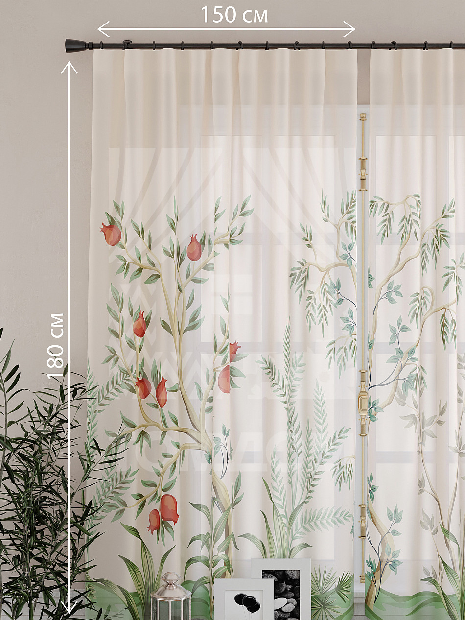 Ширина одного тюля без сборки 150 см, высота 180 см.
