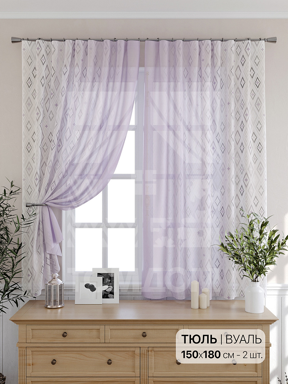 Тюль 2 шт. — 150х180 см. — 150x180 см. Вуаль страна-производитель — Россия.
