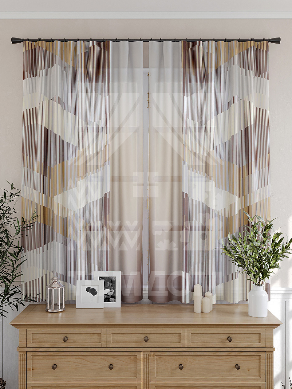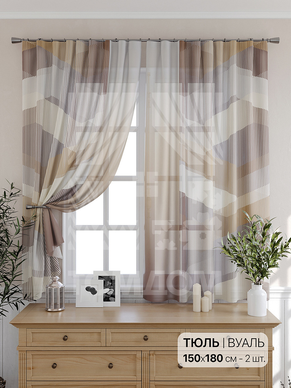 Тюль 2 шт. Подхват - доп.услуга. Легкая основа (вуаль) оформлена принтом. Вуаль с матовой полупрозрачной текстурой. Отличается особым шиком, идеально подходит для создания воздушных штор. Придает ощущение свежести, хорошо пропускает воздух. Ткань неприхотлива в уходе, хорошо стирается без разрушения волокон с течением времени за счет высокого кручения нитей.