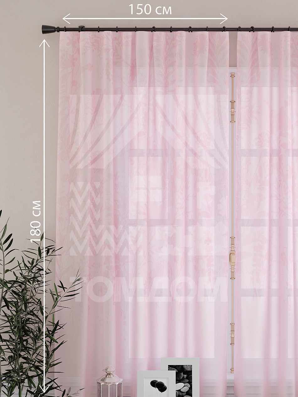Ширина одного тюля без сборки 150 см, высота 180 см.
