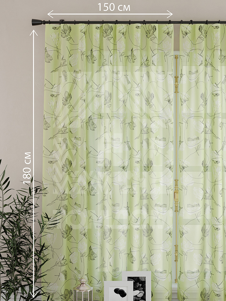 Ширина одного тюля без сборки 150 см, высота 180 см.