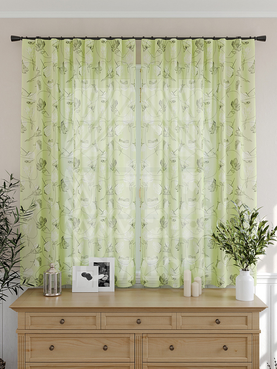 Тюль 2 шт. Подхват - доп.услуга. Легкая основа (вуаль) оформлена принтом. Вуаль с матовой полупрозрачной текстурой. Отличается особым шиком, идеально подходит для создания воздушных штор. Придает ощущение свежести, хорошо пропускает воздух. Ткань неприхотлива в уходе, хорошо стирается без разрушения волокон с течением времени за счет высокого кручения нитей.