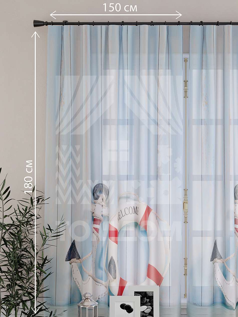 Ширина одного тюля без сборки 150 см, высота 180 см.
