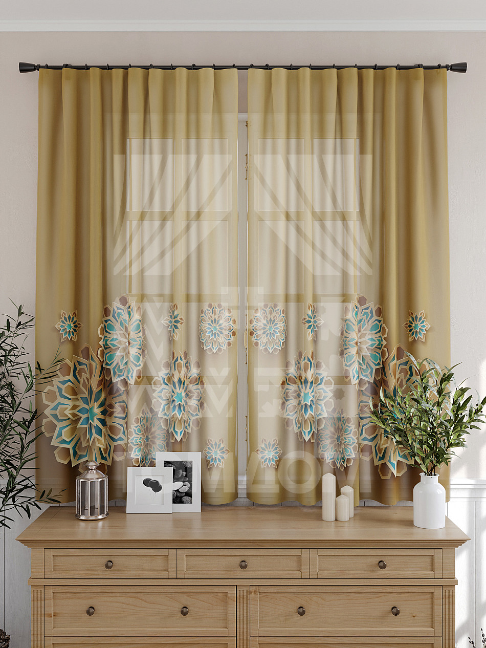 Тюль 2 шт. Подхват - доп.услуга. Легкая основа (вуаль) оформлена принтом. Вуаль с матовой полупрозрачной текстурой. Отличается особым шиком, идеально подходит для создания воздушных штор. Придает ощущение свежести, хорошо пропускает воздух. Ткань неприхотлива в уходе, хорошо стирается без разрушения волокон с течением времени за счет высокого кручения нитей.