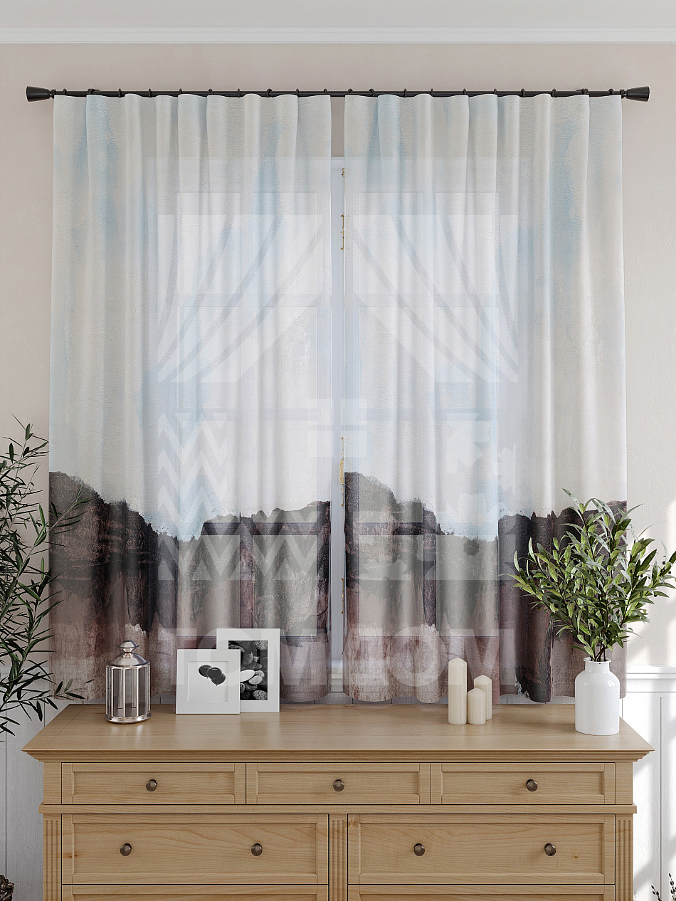 Тюль 2 шт. Подхват - доп.услуга. Легкая основа (вуаль) оформлена принтом. Вуаль с матовой полупрозрачной текстурой. Отличается особым шиком, идеально подходит для создания воздушных штор. Придает ощущение свежести, хорошо пропускает воздух. Ткань неприхотлива в уходе, хорошо стирается без разрушения волокон с течением времени за счет высокого кручения нитей.