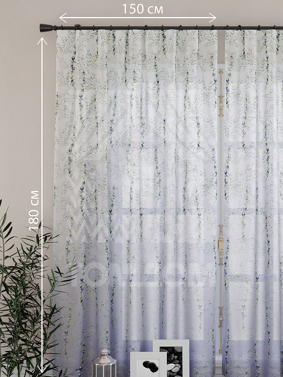 Ширина одного тюля без сборки 150 см, высота 180 см.