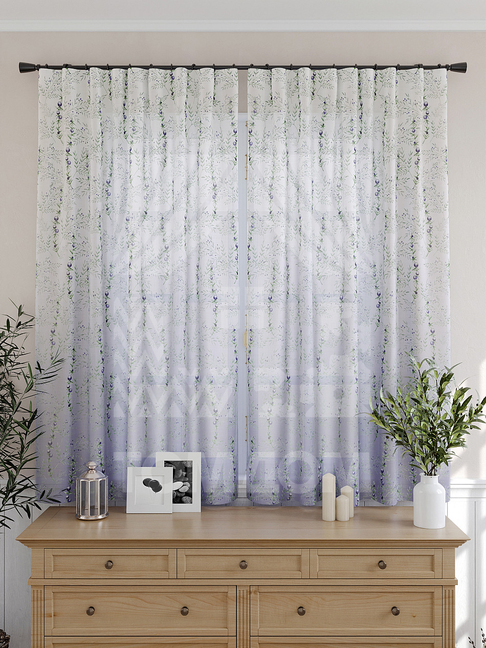 Тюль 2 шт. Подхват - доп.услуга. Легкая основа (вуаль) оформлена принтом. Вуаль с матовой полупрозрачной текстурой. Отличается особым шиком, идеально подходит для создания воздушных штор. Придает ощущение свежести, хорошо пропускает воздух. Ткань неприхотлива в уходе, хорошо стирается без разрушения волокон с течением времени за счет высокого кручения нитей.