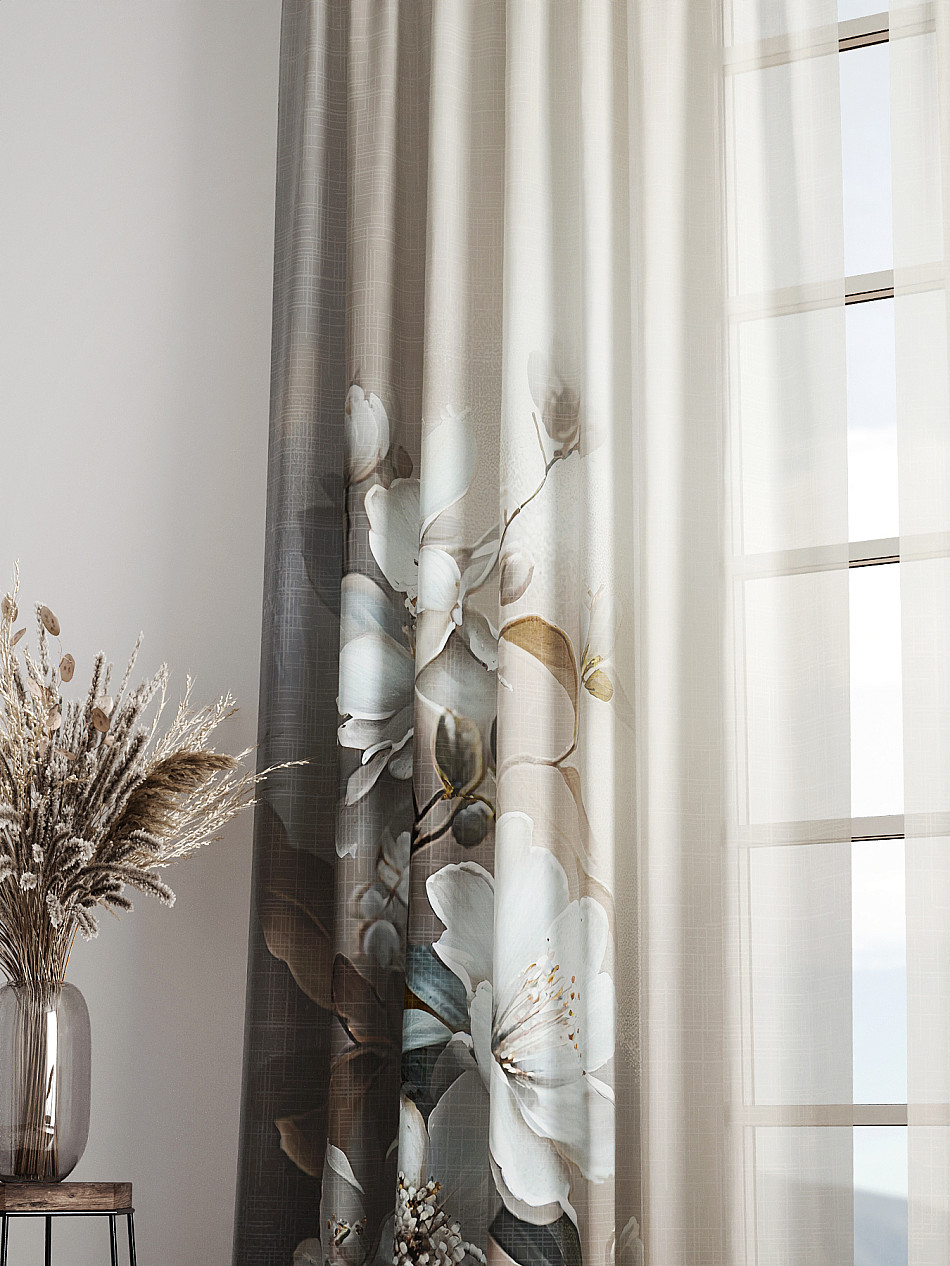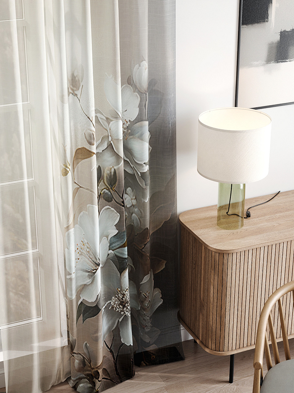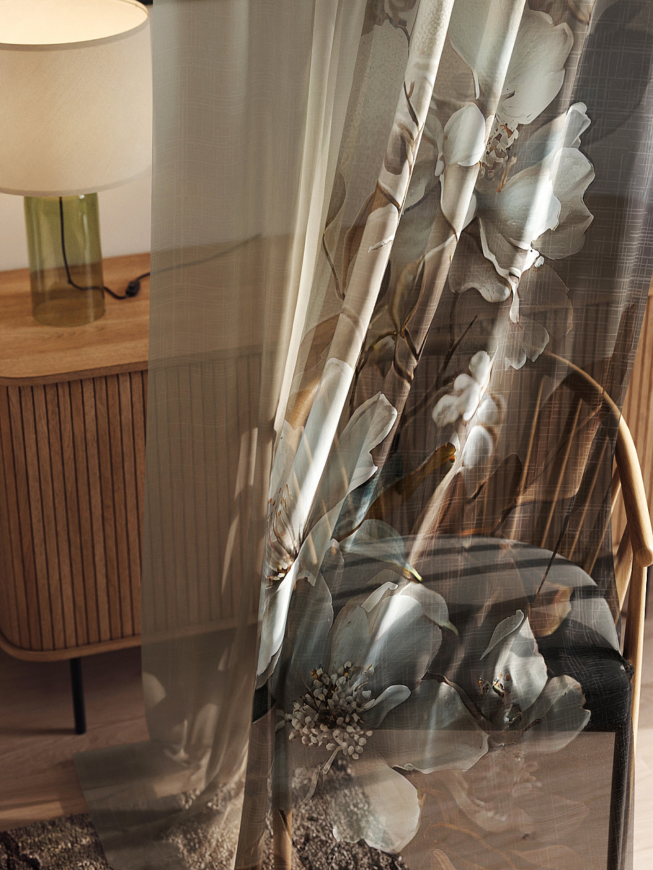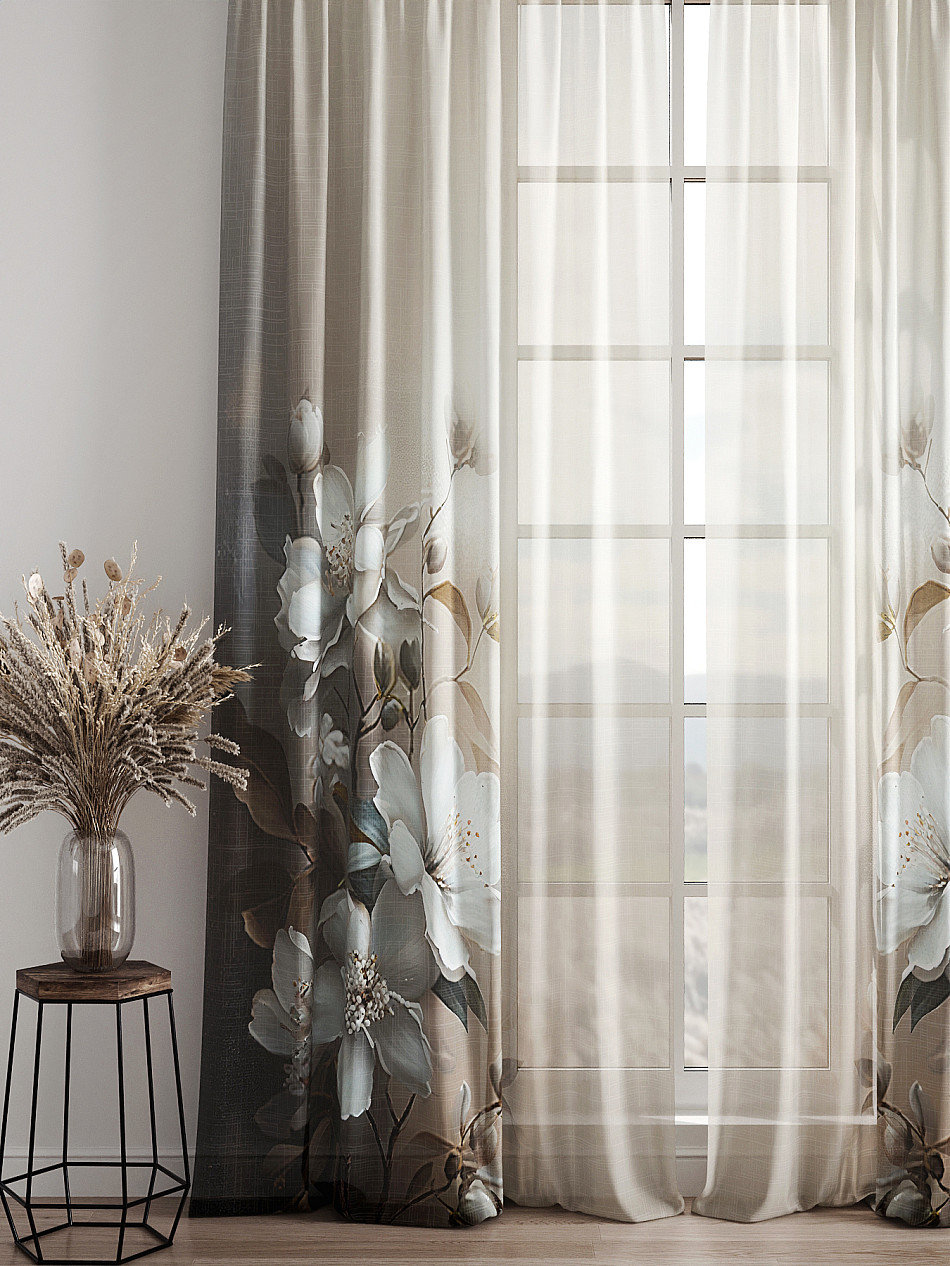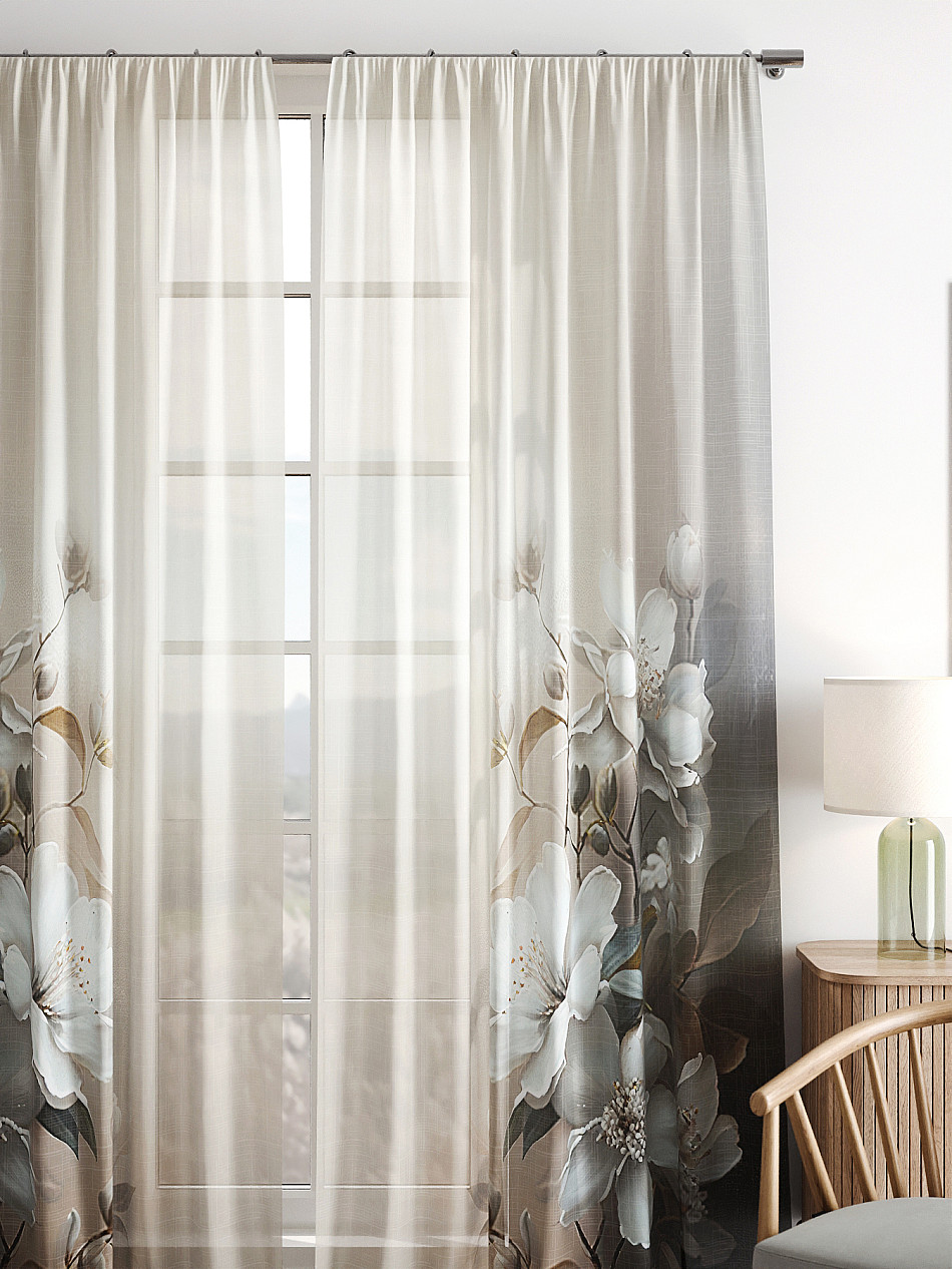 - Вуаль портьера для комнаты с принтом