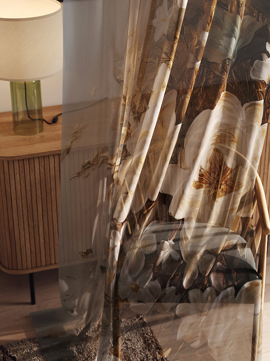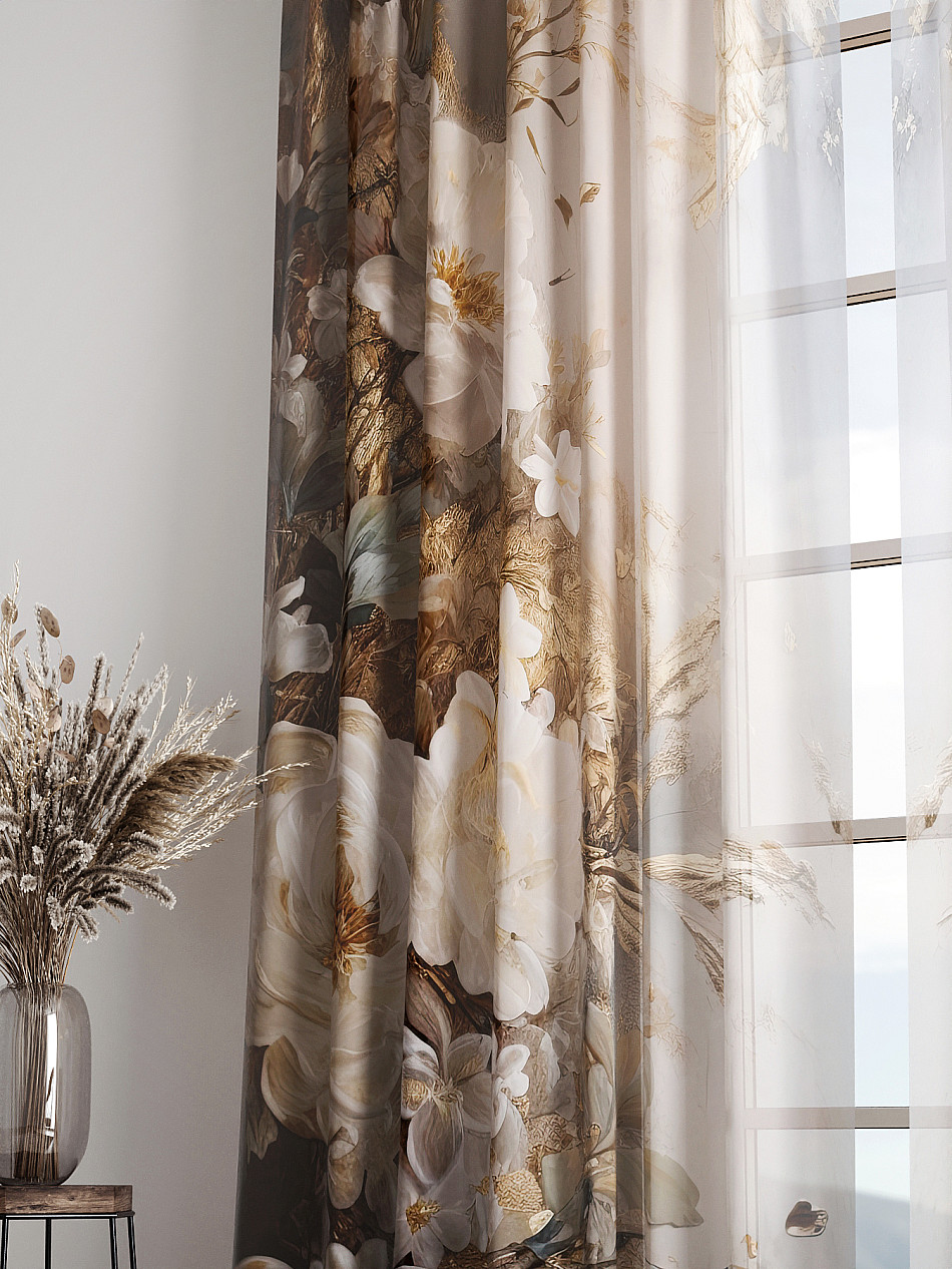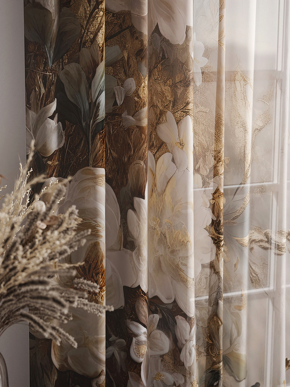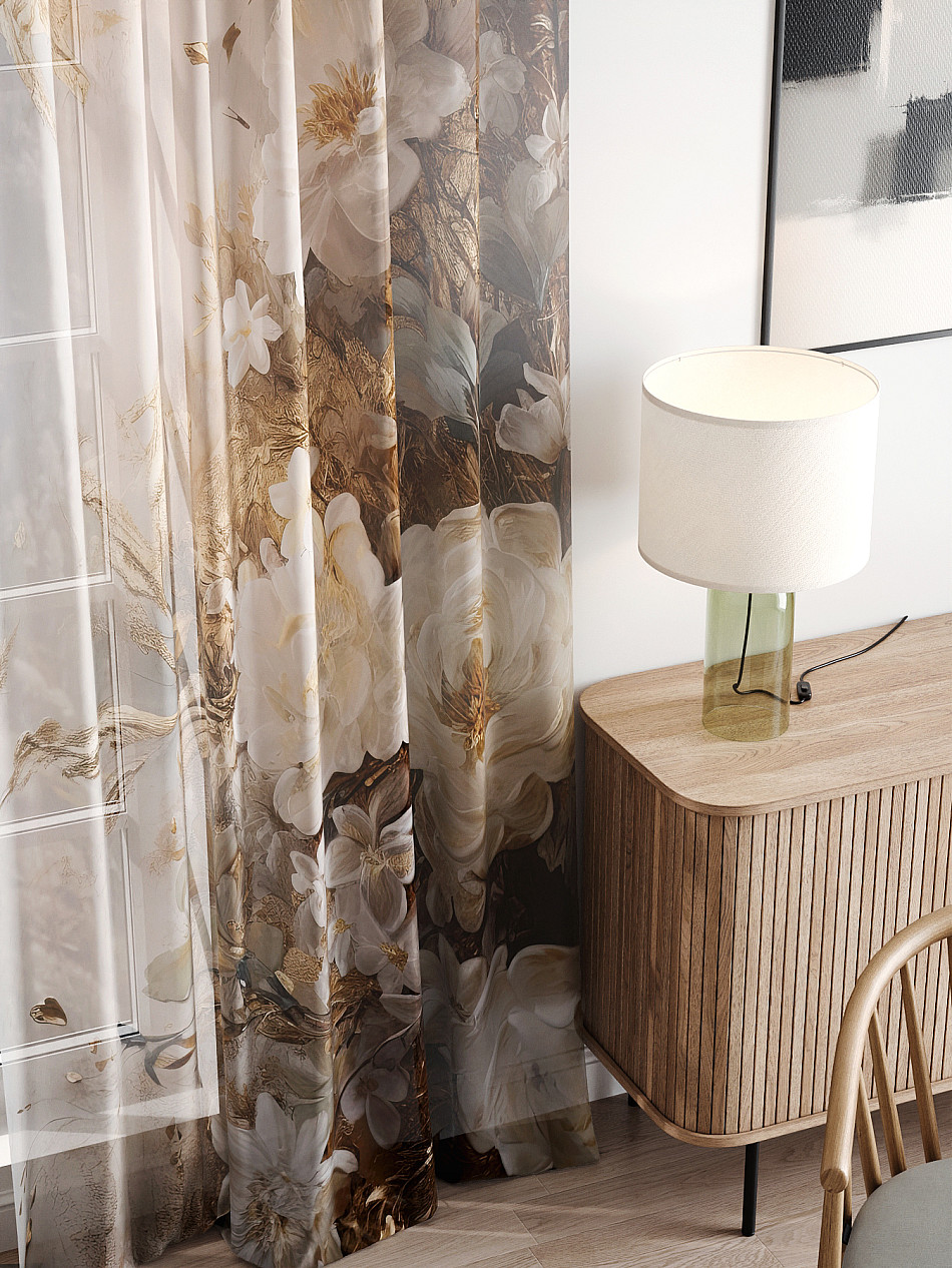 Тюль 2 шт. Легкая основа (вуаль) оформлена фотопечатью. Вуаль с матовой полупрозрачной текстурой. Отличается особым шиком, идеально подходит для создания воздушных штор. Придает ощущение свежести, хорошо пропускает воздух. Ткань неприхотлива в уходе, хорошо стирается без разрушения волокон с течением времени за счет высокого кручения нитей.