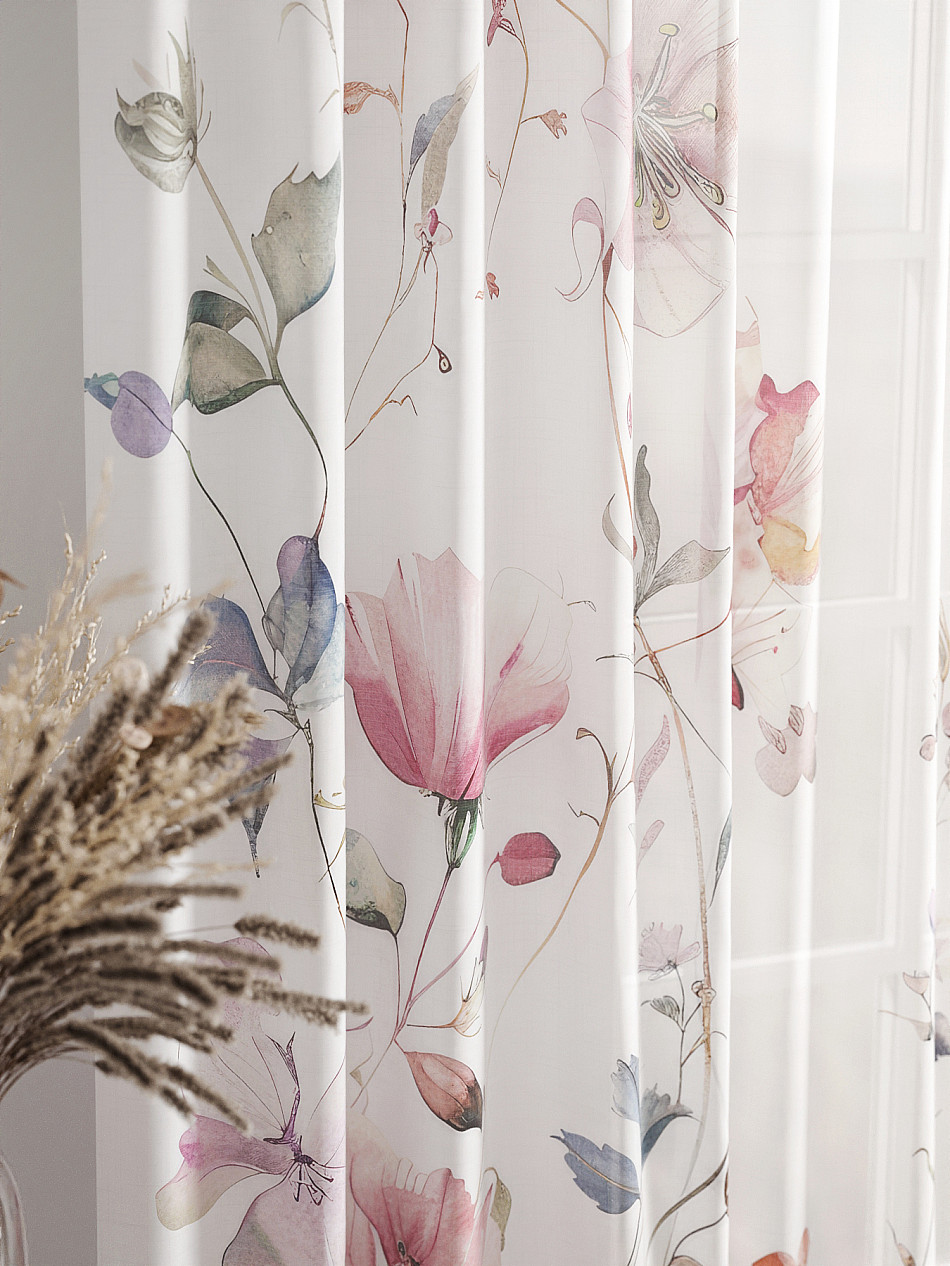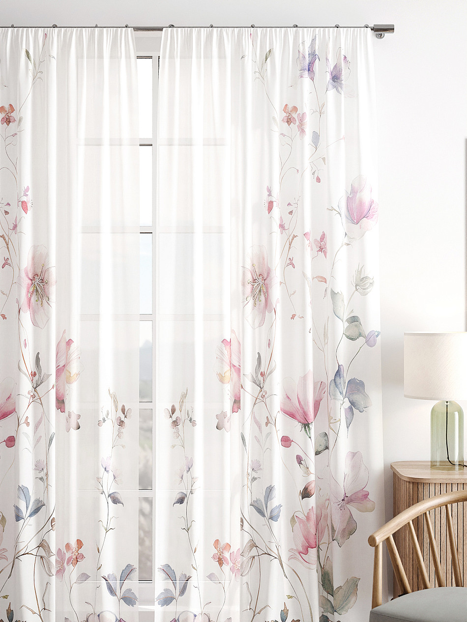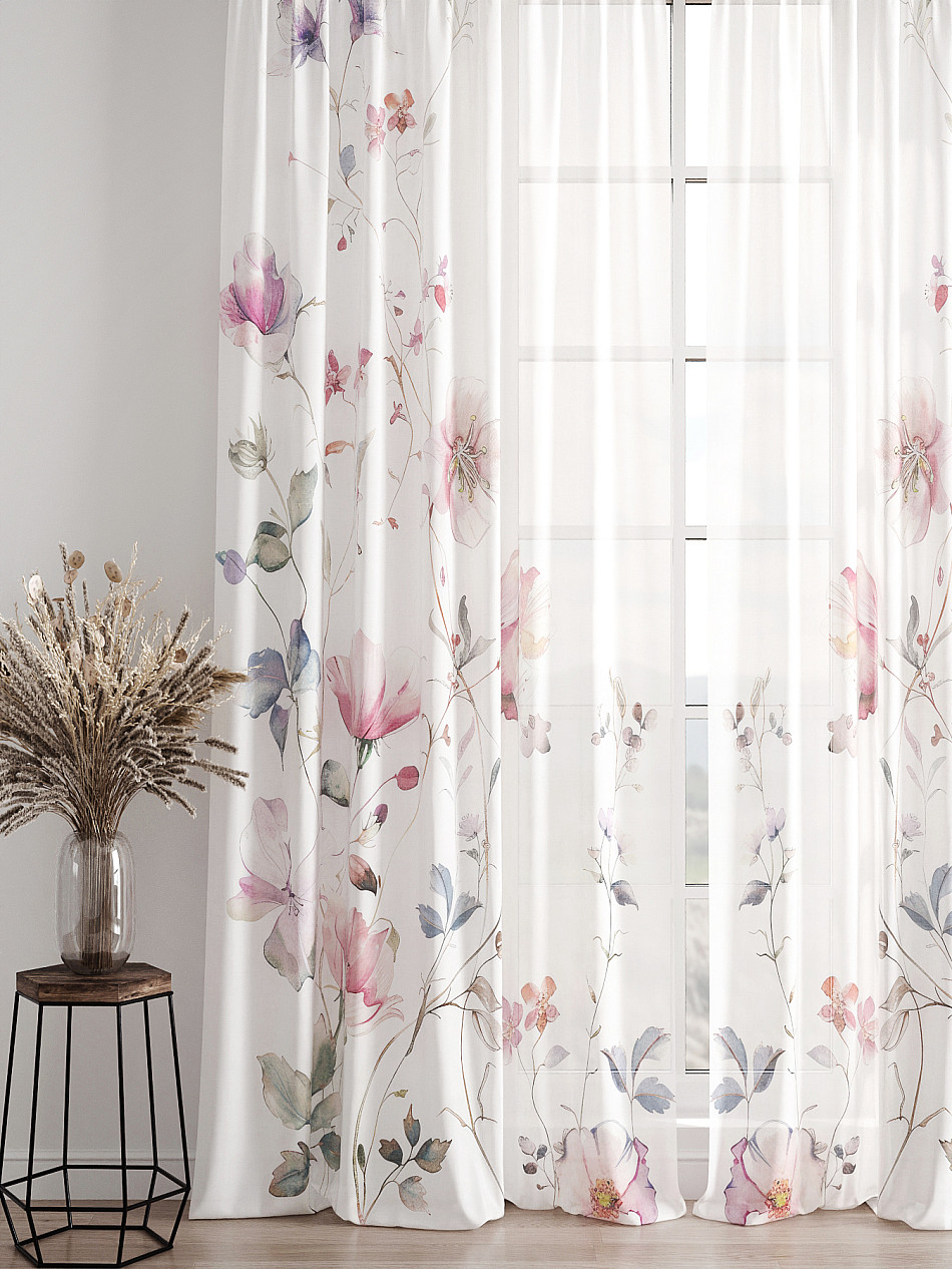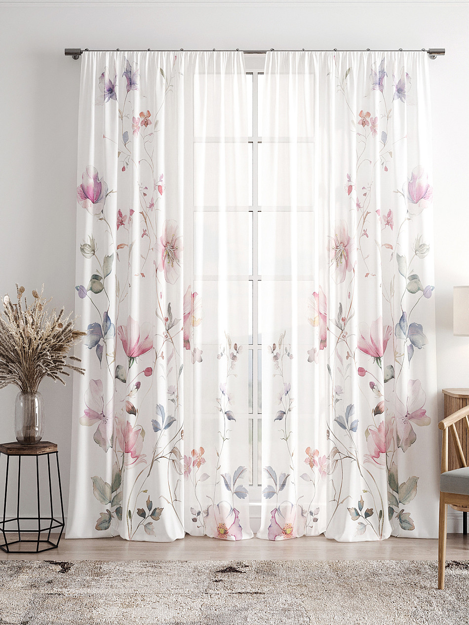 Тюль 2 шт. Легкая основа (вуаль) оформлена фотопечатью. Вуаль с матовой полупрозрачной текстурой. Отличается особым шиком, идеально подходит для создания воздушных штор. Придает ощущение свежести, хорошо пропускает воздух. Ткань неприхотлива в уходе, хорошо стирается без разрушения волокон с течением времени за счет высокого кручения нитей.