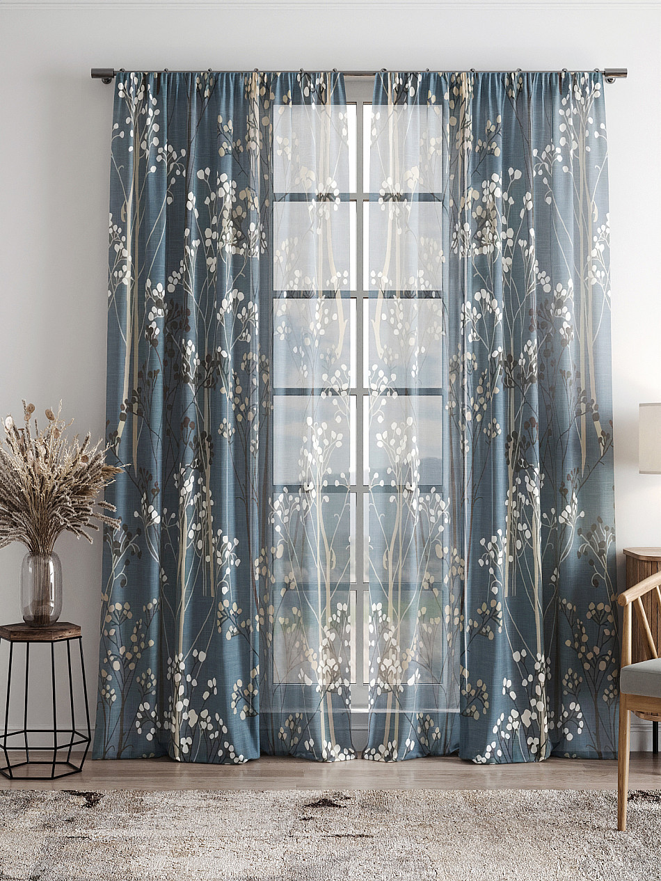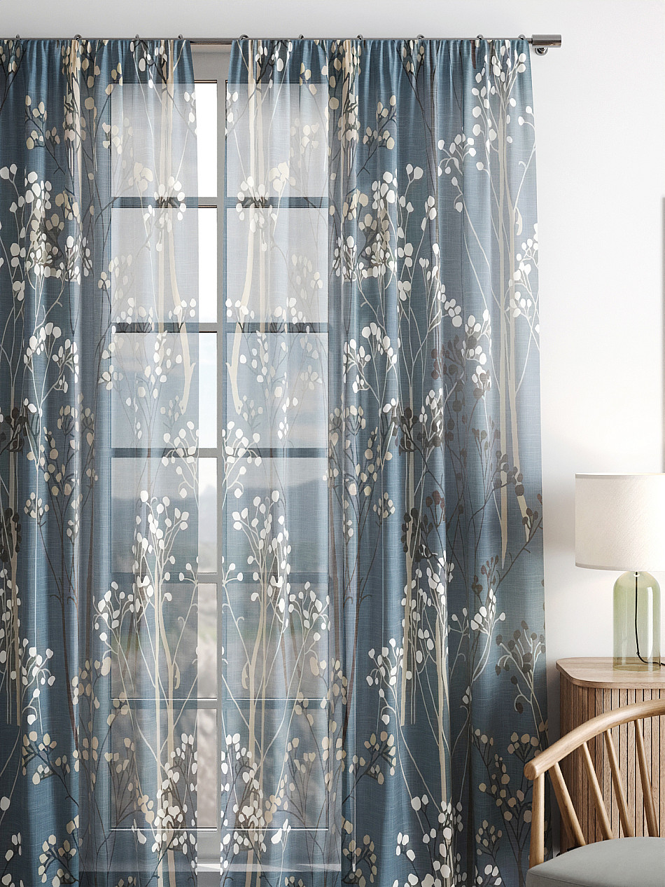 Тюль 2 шт. Легкая основа (вуаль) оформлена фотопечатью. Вуаль с матовой полупрозрачной текстурой. Отличается особым шиком, идеально подходит для создания воздушных штор. Придает ощущение свежести, хорошо пропускает воздух. Ткань неприхотлива в уходе, хорошо стирается без разрушения волокон с течением времени за счет высокого кручения нитей.