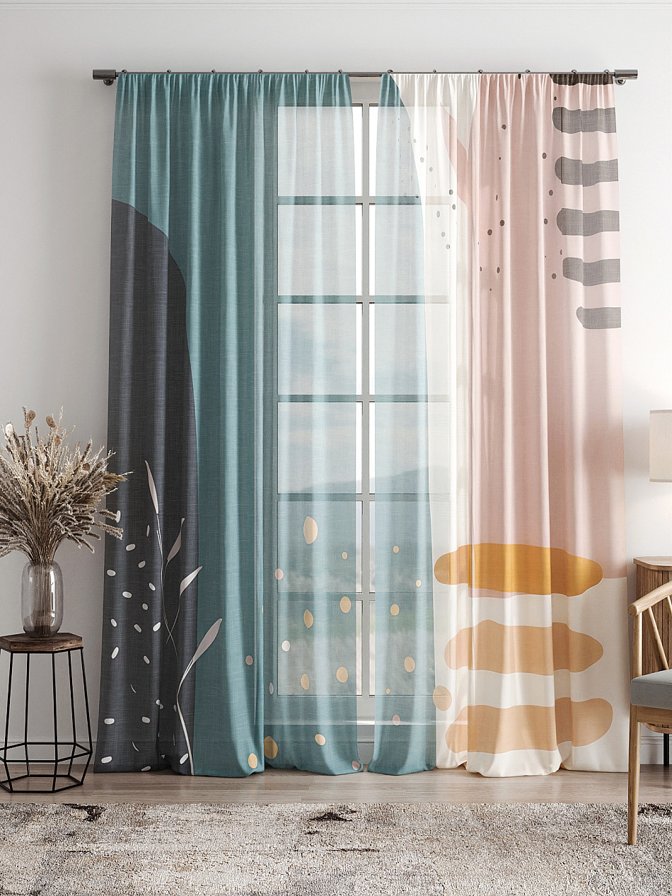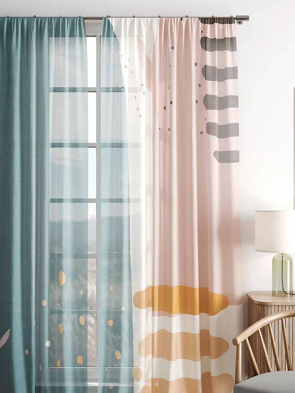 Тюль 2 шт. Легкая основа (вуаль) оформлена фотопечатью. Вуаль с матовой полупрозрачной текстурой. Отличается особым шиком, идеально подходит для создания воздушных штор. Придает ощущение свежести, хорошо пропускает воздух. Ткань неприхотлива в уходе, хорошо стирается без разрушения волокон с течением времени за счет высокого кручения нитей.