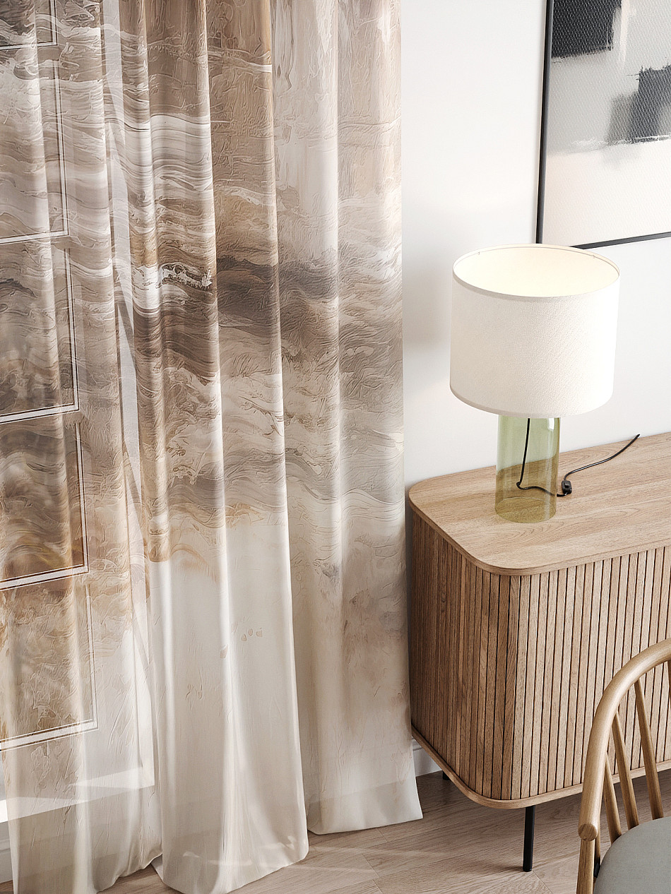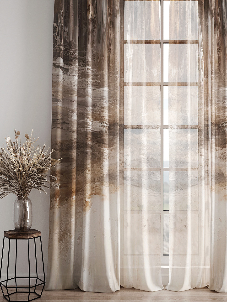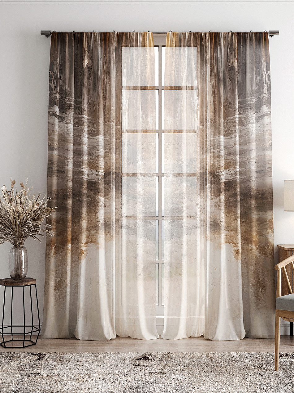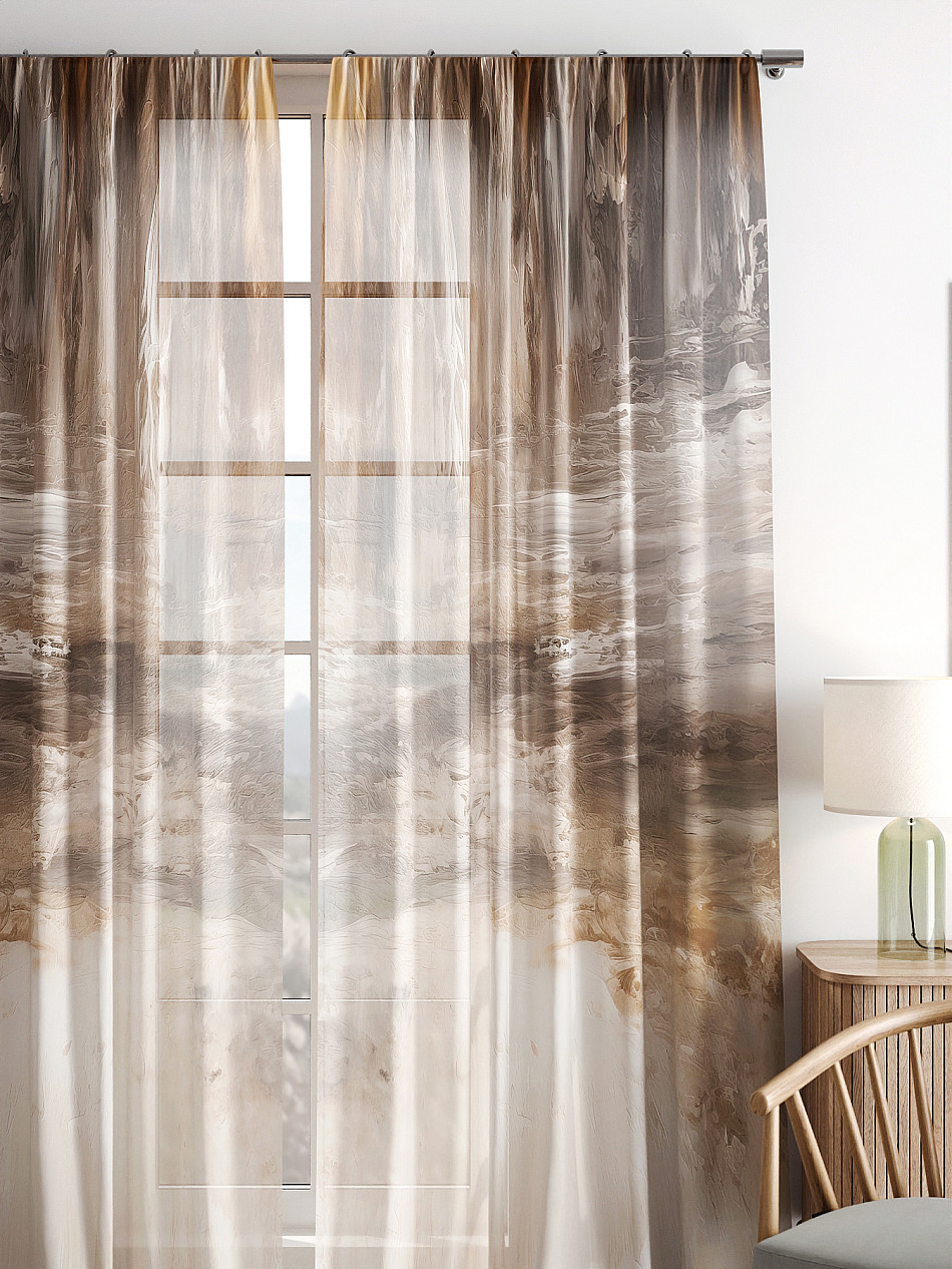 Тюль 2 шт. Легкая основа (вуаль) оформлена фотопечатью. Вуаль с матовой полупрозрачной текстурой. Отличается особым шиком, идеально подходит для создания воздушных штор. Придает ощущение свежести, хорошо пропускает воздух. Ткань неприхотлива в уходе, хорошо стирается без разрушения волокон с течением времени за счет высокого кручения нитей.