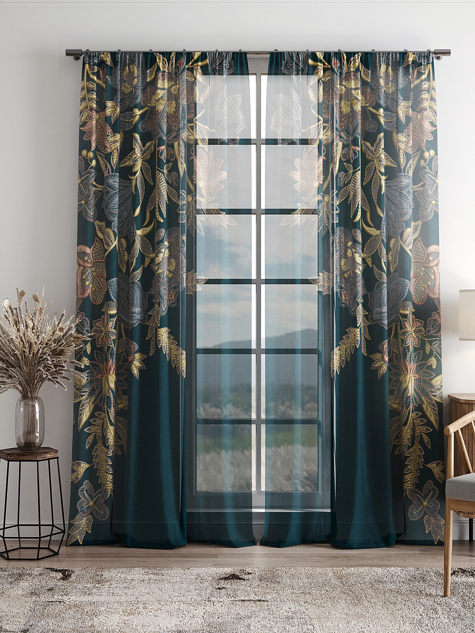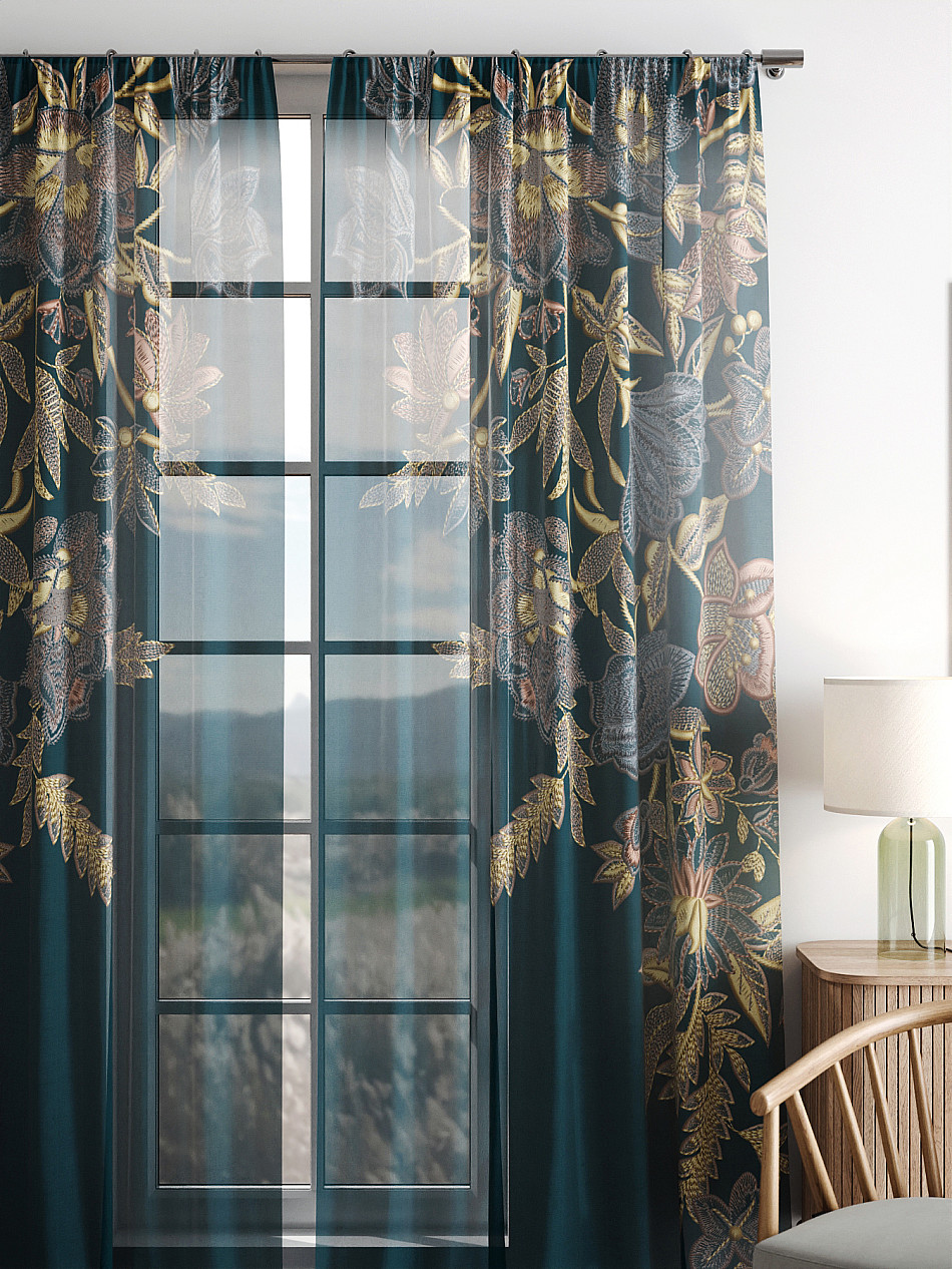 Тюль 2 шт. Легкая основа (вуаль) оформлена фотопечатью. Вуаль с матовой полупрозрачной текстурой. Отличается особым шиком, идеально подходит для создания воздушных штор. Придает ощущение свежести, хорошо пропускает воздух. Ткань неприхотлива в уходе, хорошо стирается без разрушения волокон с течением времени за счет высокого кручения нитей.
