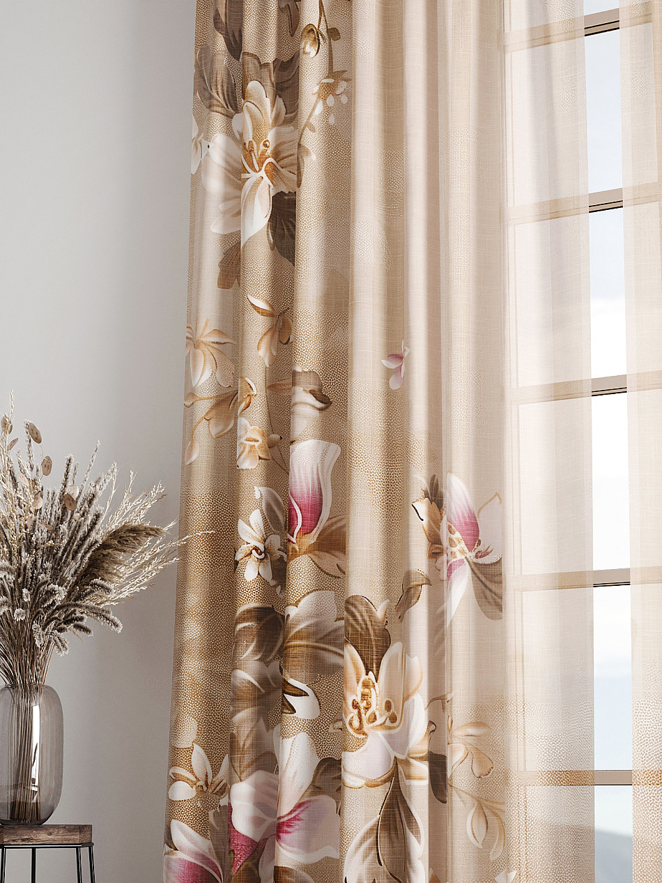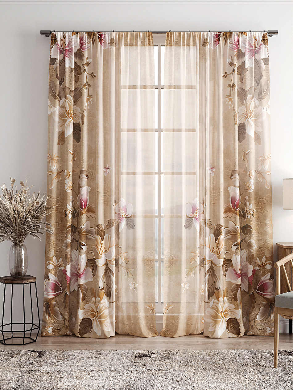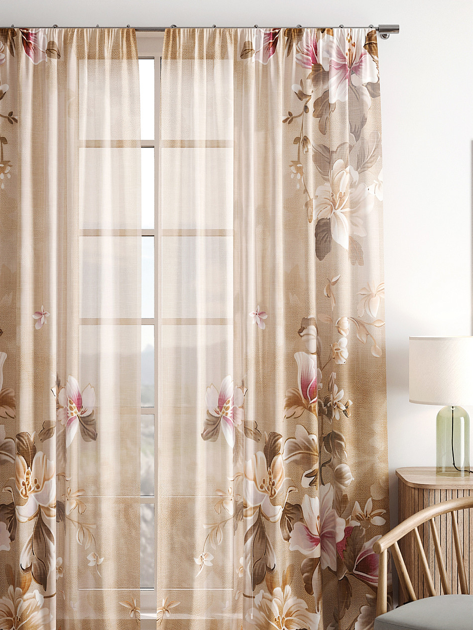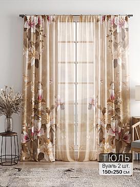 Тюль 2 шт. Легкая основа (вуаль) оформлена фотопечатью. Вуаль с матовой полупрозрачной текстурой. Отличается особым шиком, идеально подходит для создания воздушных штор. Придает ощущение свежести, хорошо пропускает воздух. Ткань неприхотлива в уходе, хорошо стирается без разрушения волокон с течением времени за счет высокого кручения нитей.