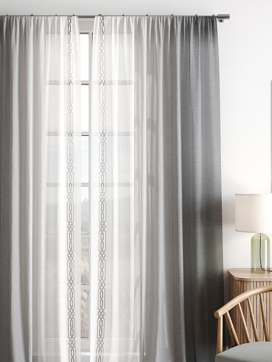 Вуаль 150х250 см — 2 шт. ( Изменить высоту) Крепление: шторная лента (крючки), кулиска Подробнее