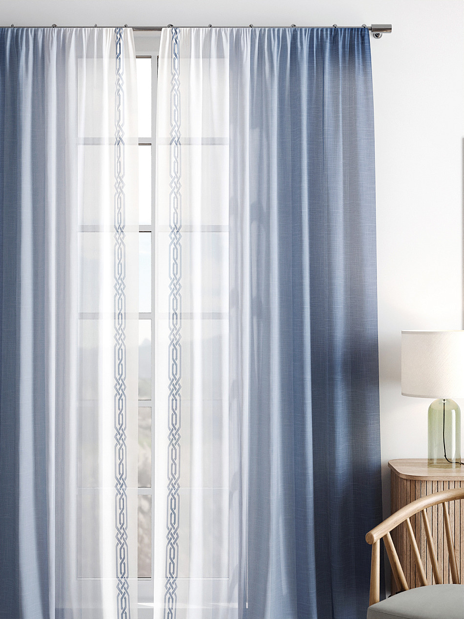 Вуаль 150х250 см — 2 шт. ( Изменить высоту) Крепление: шторная лента (крючки), кулиска Подробнее