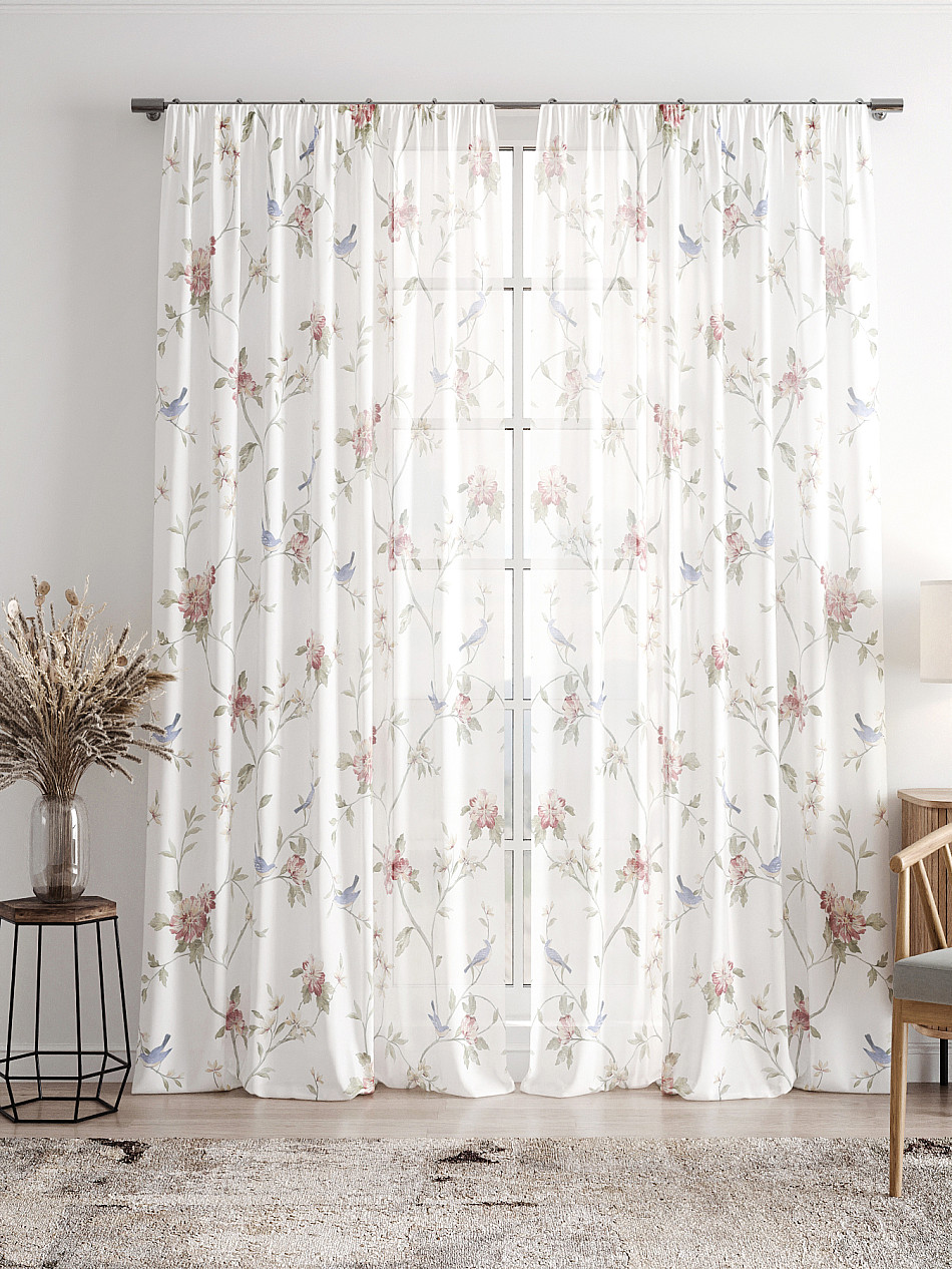 Тюль 2 шт. Легкая основа (вуаль) оформлена фотопечатью. Вуаль с матовой полупрозрачной текстурой. Отличается особым шиком, идеально подходит для создания воздушных штор. Придает ощущение свежести, хорошо пропускает воздух. Ткань неприхотлива в уходе, хорошо стирается без разрушения волокон с течением времени за счет высокого кручения нитей.