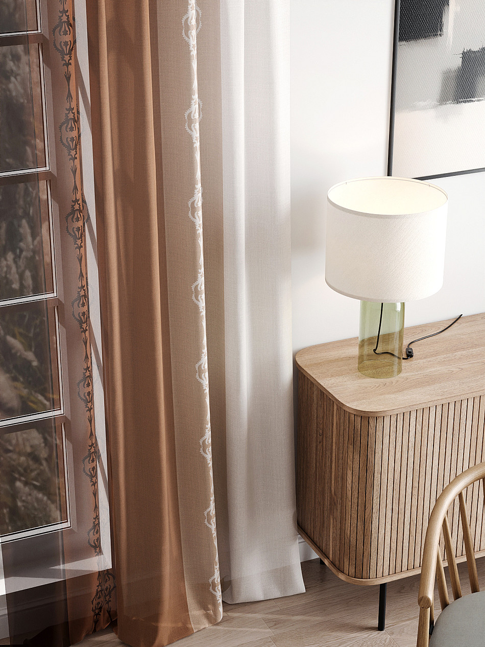 Вуаль – невесомая, практически прозрачная и очень нежная ткань, которая прекрасно смотрится в любом интерьере. Вуалевые шторы изысканны и элегантны как соло, так и в составе шторных ансамблей. Такие гардины придают окну воздушность, легко драпируются, мягко преломляют солнечные лучи и вносят изящество в оформление комнаты. Благодаря широкому ассортименту можно выбрать однотонные вуалевые шторы, либо с орнаментом, с аппликацией или вышивкой, в любом случае ваш выбор будет смотреться красиво и современно.