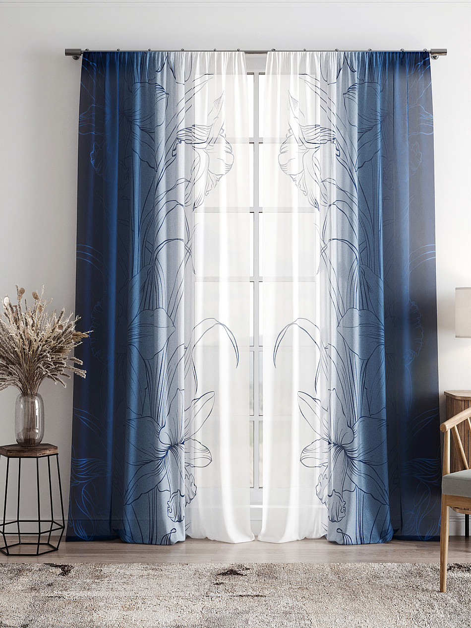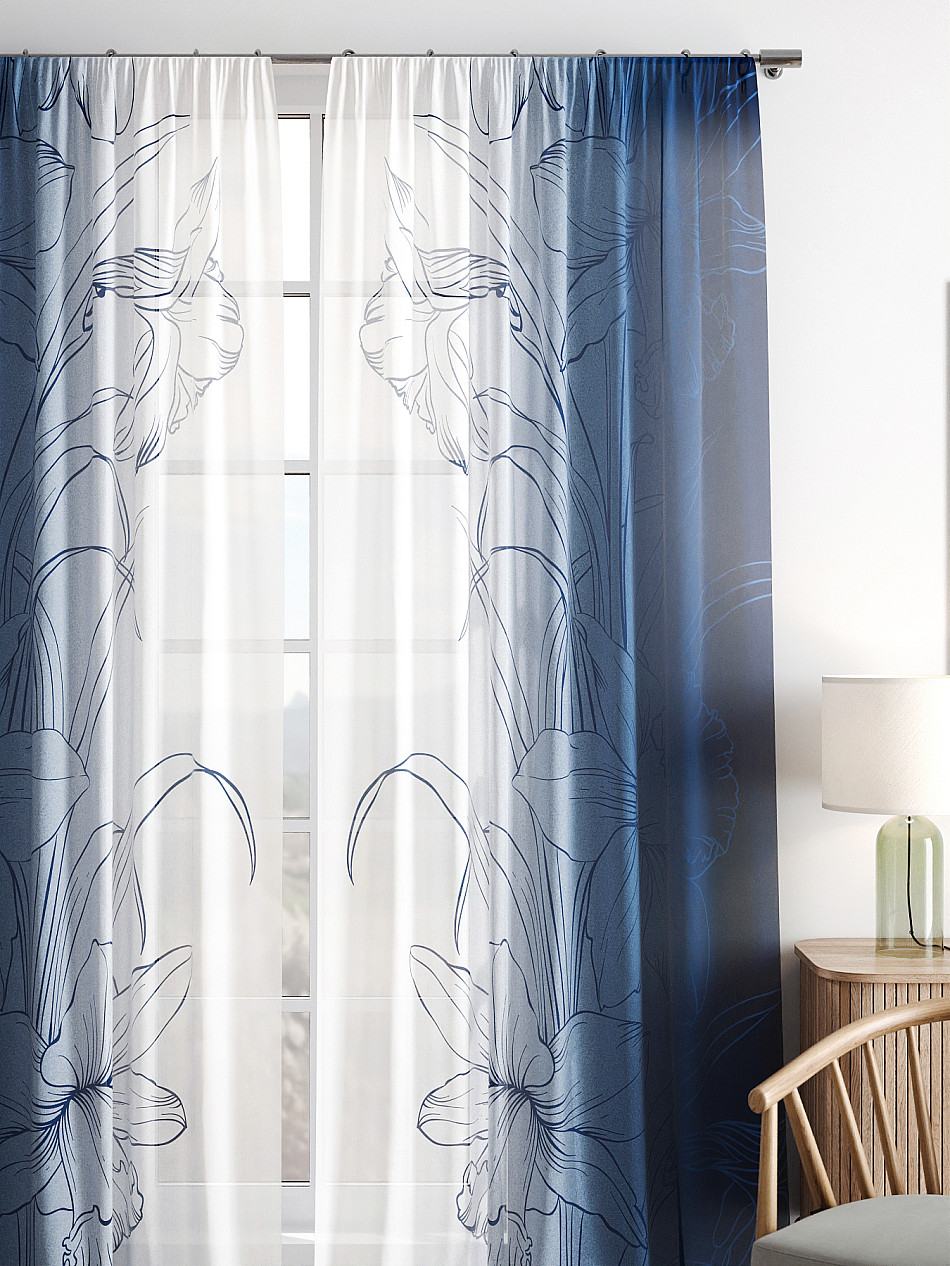 Тюль 2 шт. Легкая основа (вуаль) оформлена фотопечатью. Вуаль с матовой полупрозрачной текстурой. Отличается особым шиком, идеально подходит для создания воздушных штор. Придает ощущение свежести, хорошо пропускает воздух. Ткань неприхотлива в уходе, хорошо стирается без разрушения волокон с течением времени за счет высокого кручения нитей.