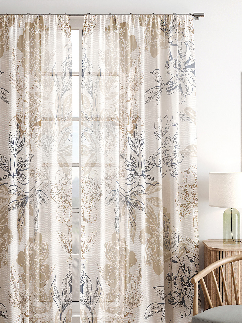 Тюль 2 шт. Легкая основа (вуаль) оформлена фотопечатью. Вуаль с матовой полупрозрачной текстурой. Отличается особым шиком, идеально подходит для создания воздушных штор. Придает ощущение свежести, хорошо пропускает воздух. Ткань неприхотлива в уходе, хорошо стирается без разрушения волокон с течением времени за счет высокого кручения нитей.