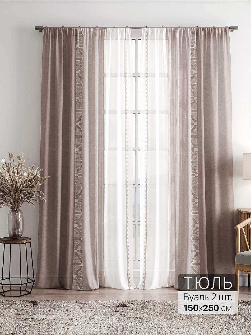 Вуаль 150х250 см — 2 шт. ( Изменить высоту) Крепление: шторная лента (крючки), кулиска Подробнее