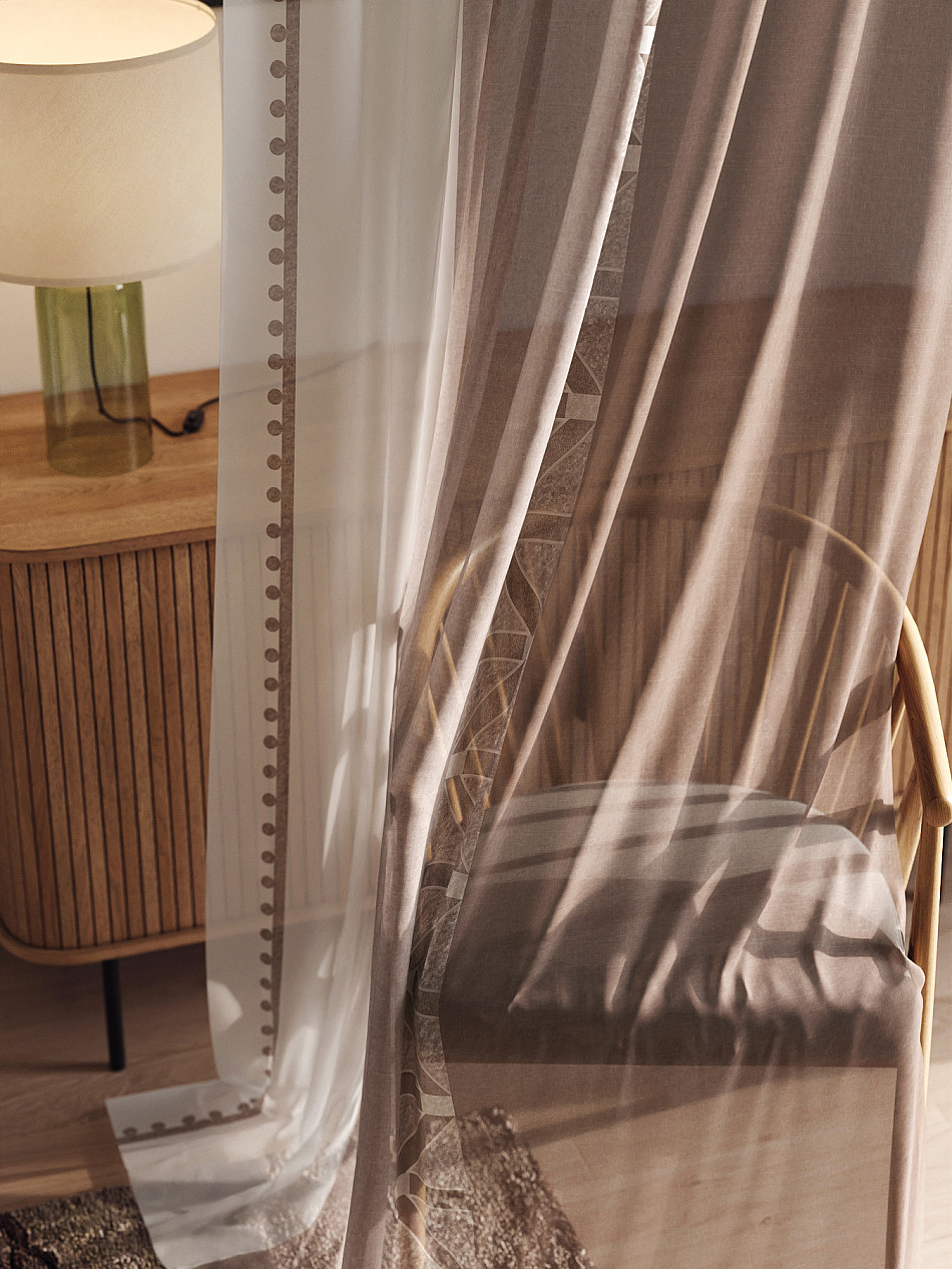 Вуаль – невесомая, практически прозрачная и очень нежная ткань, которая прекрасно смотрится в любом интерьере. Вуалевые шторы изысканны и элегантны как соло, так и в составе шторных ансамблей. Такие гардины придают окну воздушность, легко драпируются, мягко преломляют солнечные лучи и вносят изящество в оформление комнаты. Благодаря широкому ассортименту можно выбрать однотонные вуалевые шторы, либо с орнаментом, с аппликацией или вышивкой, в любом случае ваш выбор будет смотреться красиво и современно.